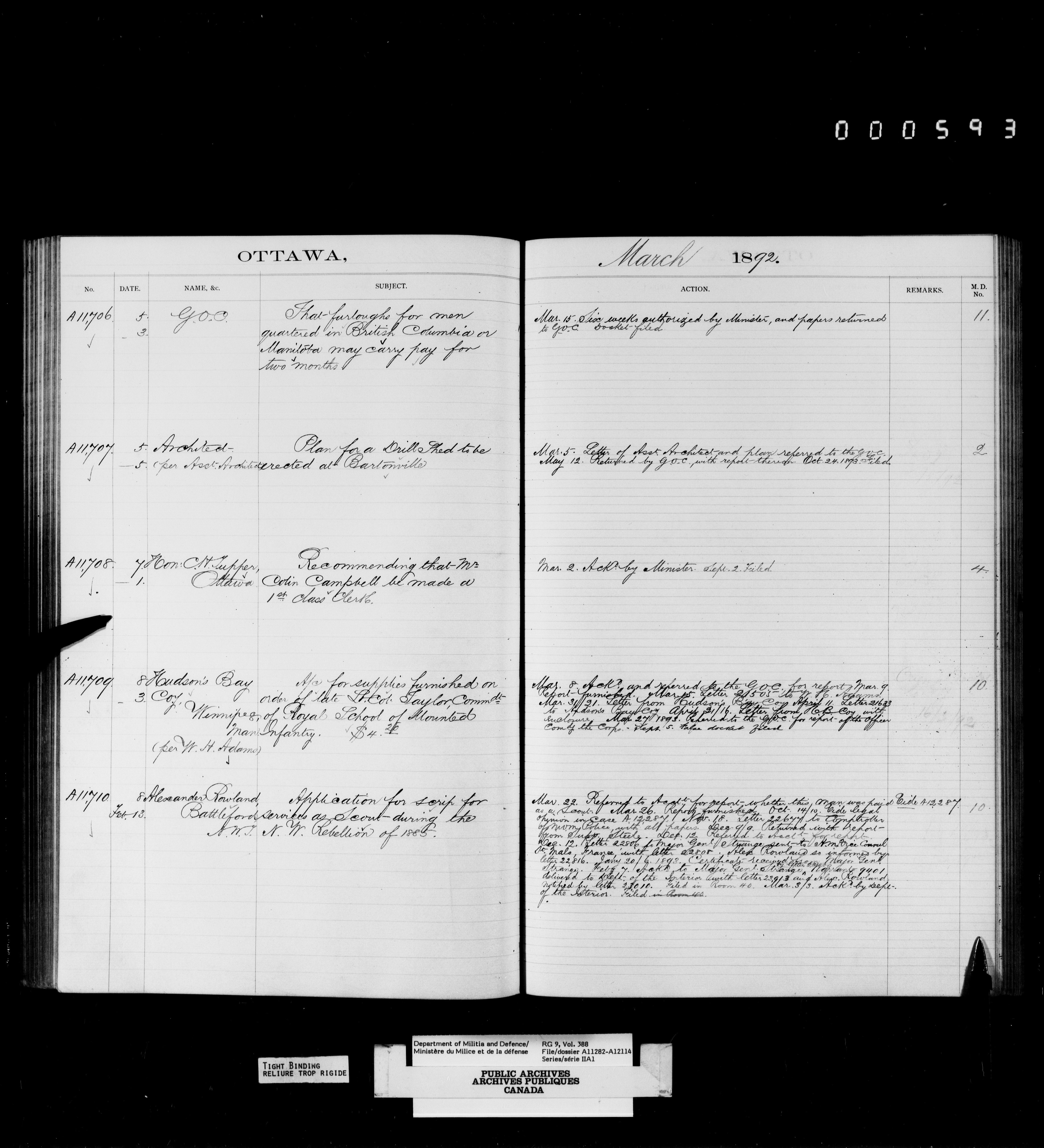 Department of Militia and Defence : Register of correspondence of the Deputy Minister's office, 1889-1892 - 4178