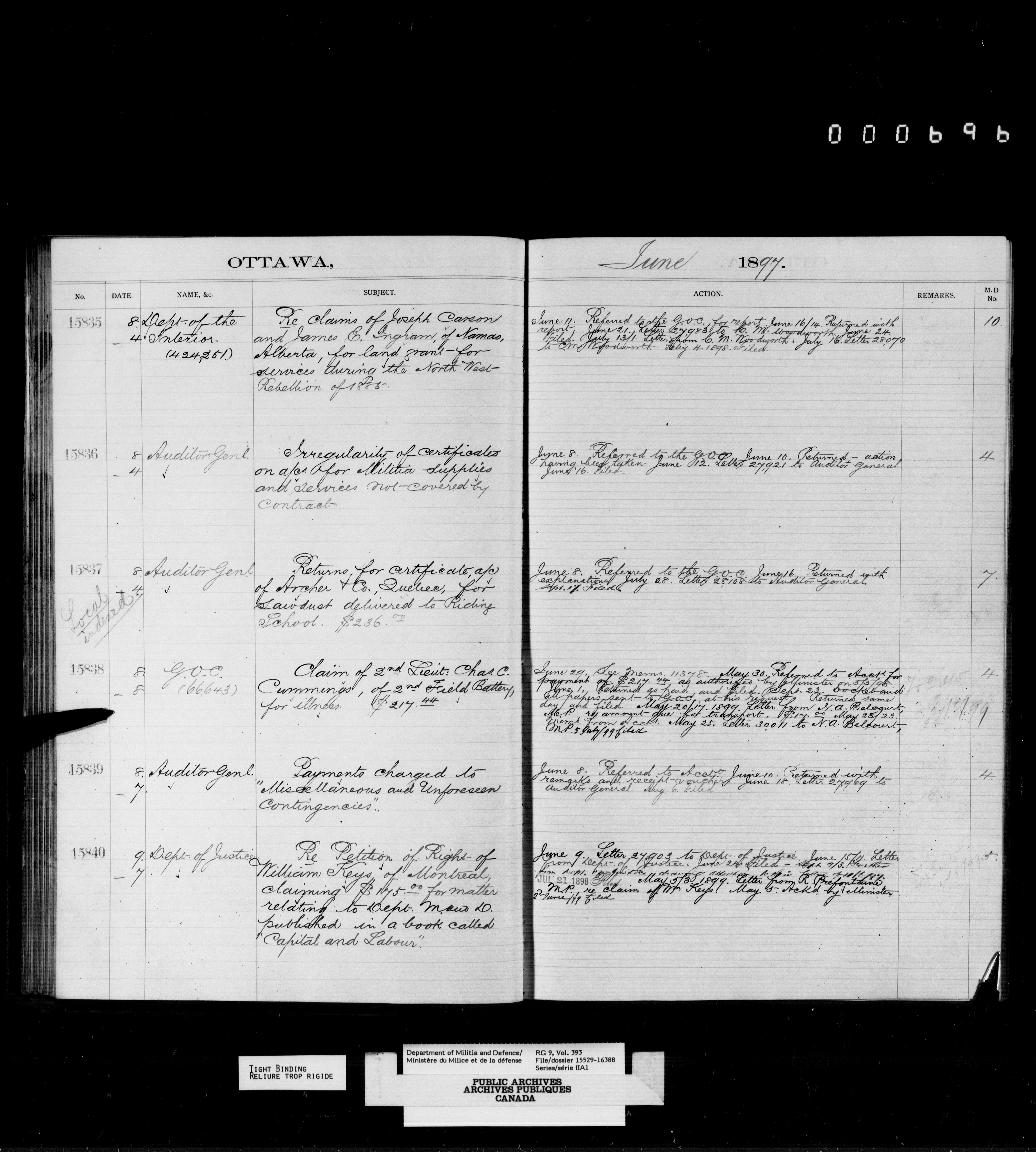 Department of Militia and Defence : Register of correspondence of the Deputy Minister's office, 1892 - 4179