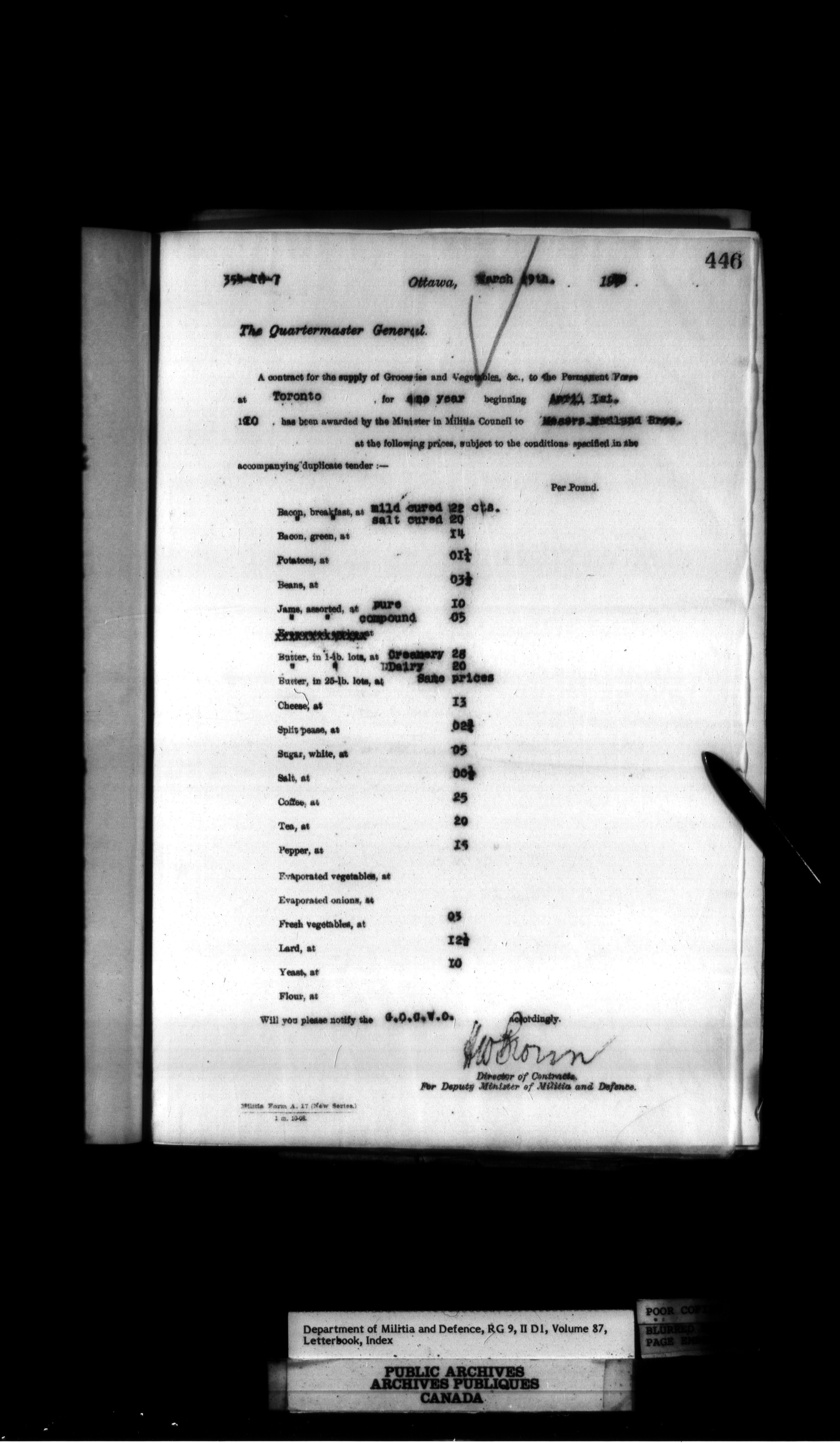 Department of Militia and Defence : Contracts Branch letterbooks, 1895-1912 - 418