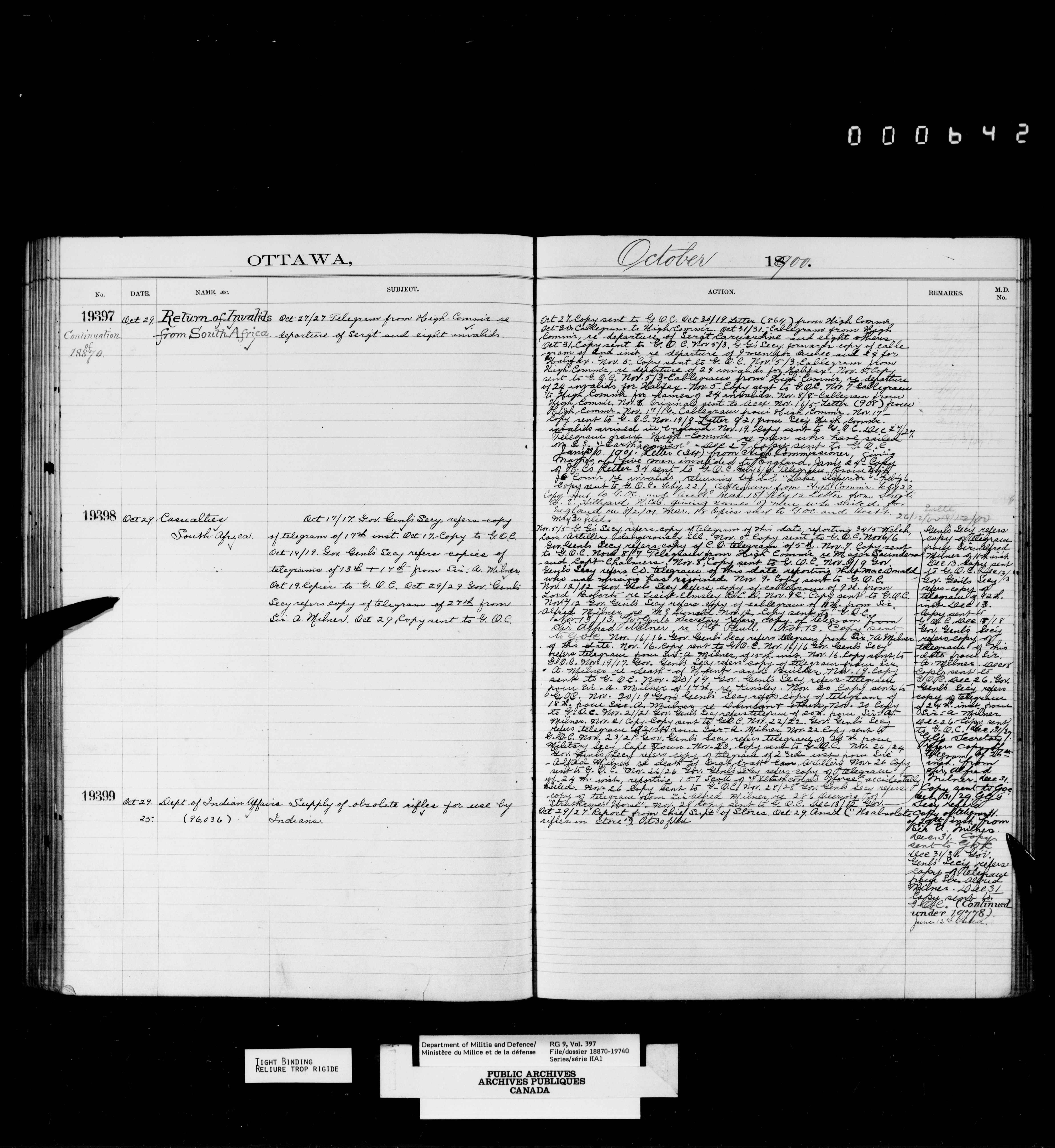 Department of Militia and Defence : Register of correspondence of the Deputy Minister's office, 1897-1901 - 4180