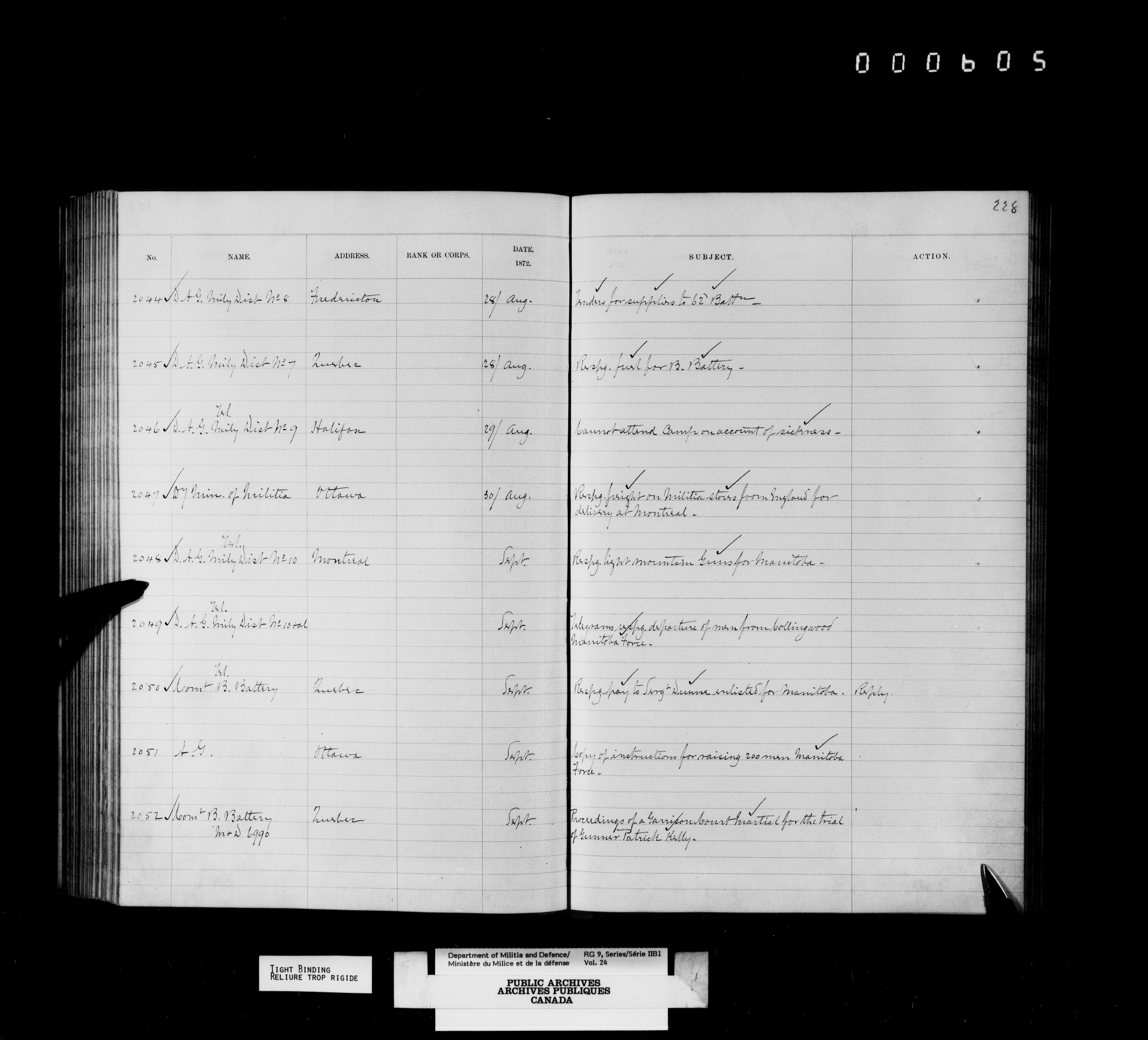 Correspondence of the General Officer Commanding (GOC) of the Canadian Militia and his predecessor, the Adjutant General : T-4187