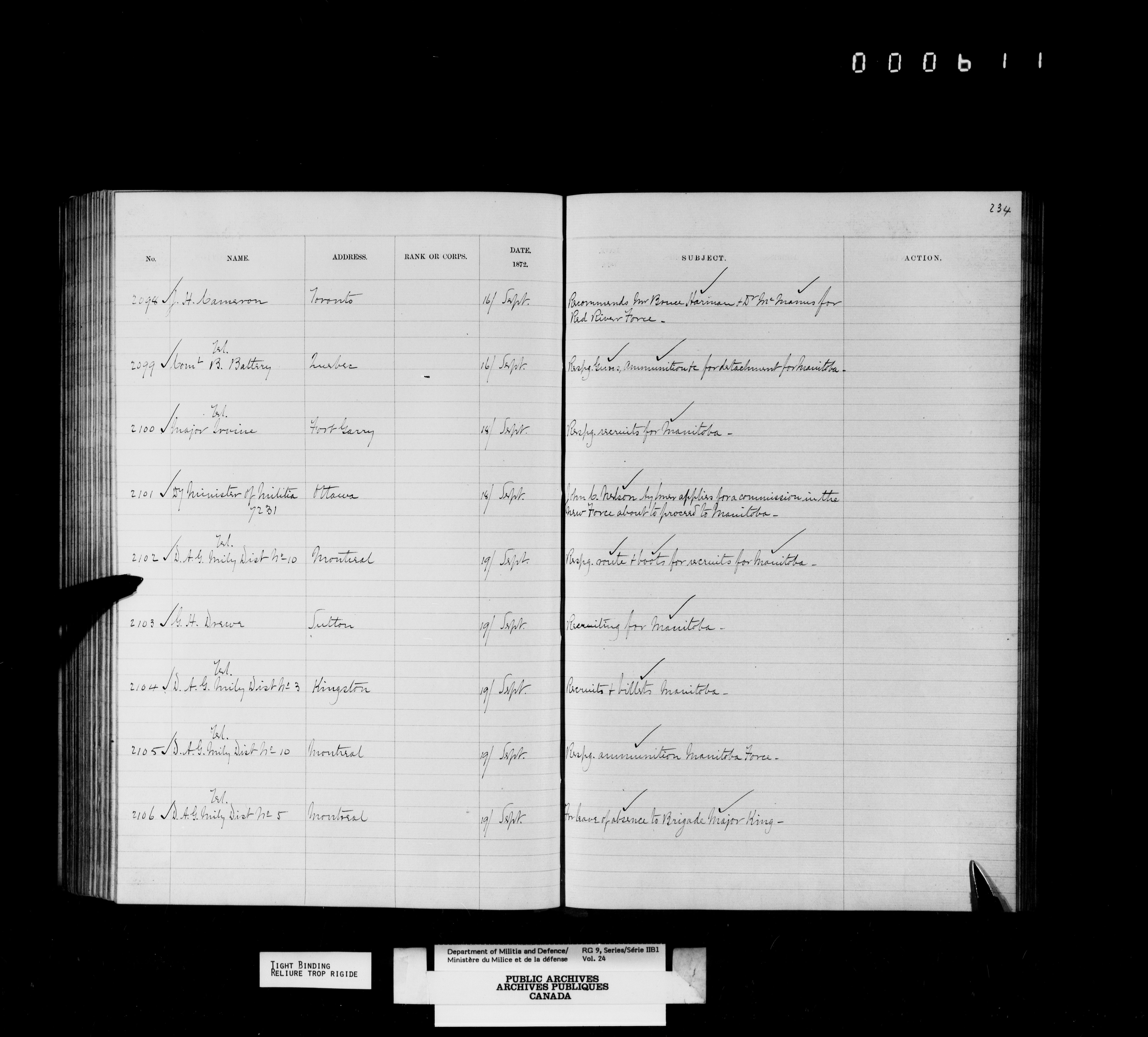 Correspondence of the General Officer Commanding (GOC) of the Canadian Militia and his predecessor, the Adjutant General : T-4187