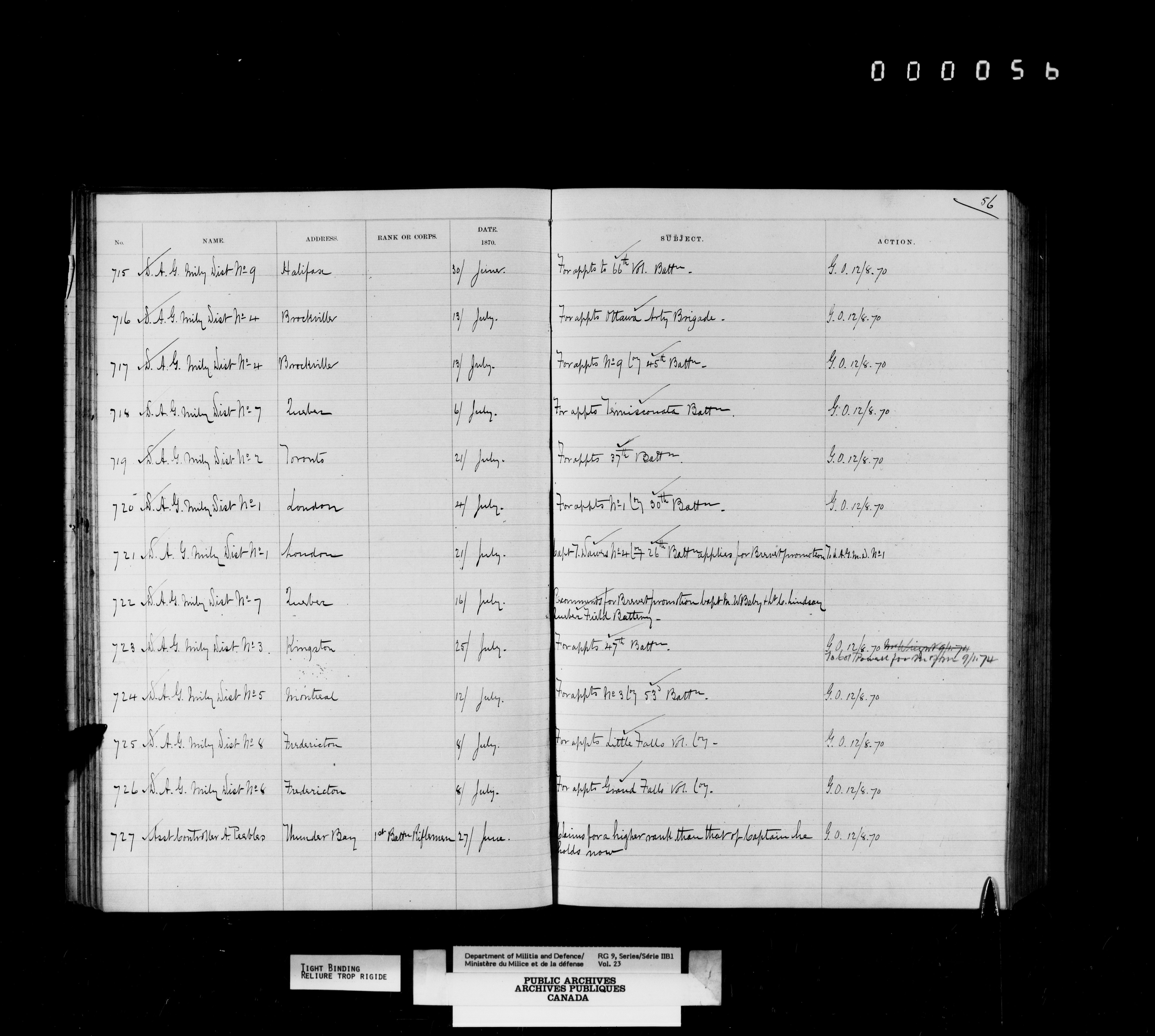 Correspondence of the General Officer Commanding (GOC) of the Canadian Militia and his predecessor, the Adjutant General : T-4187