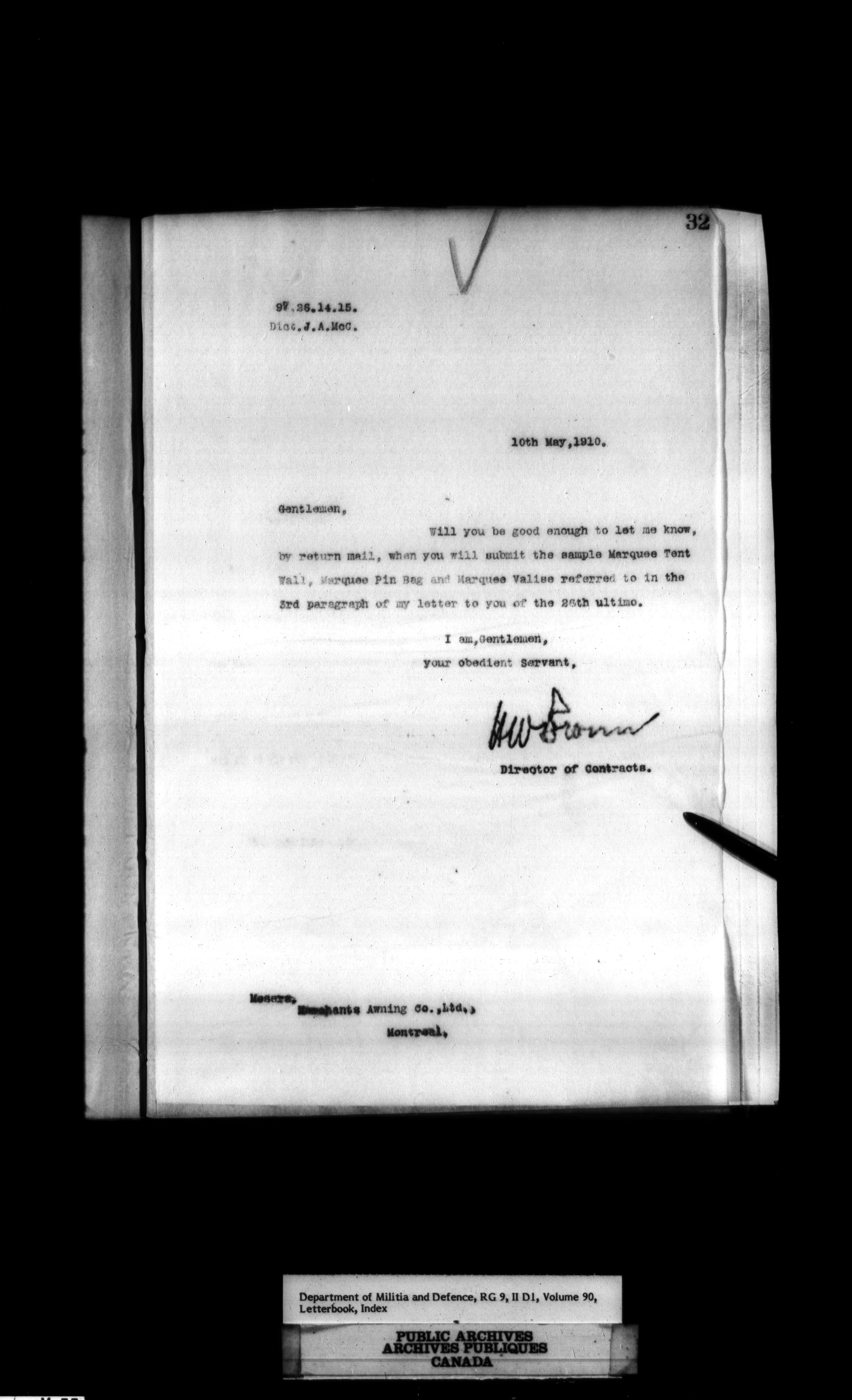 Department of Militia and Defence. Contracts Branch : Letterbooks, 1895-1912 : T-419