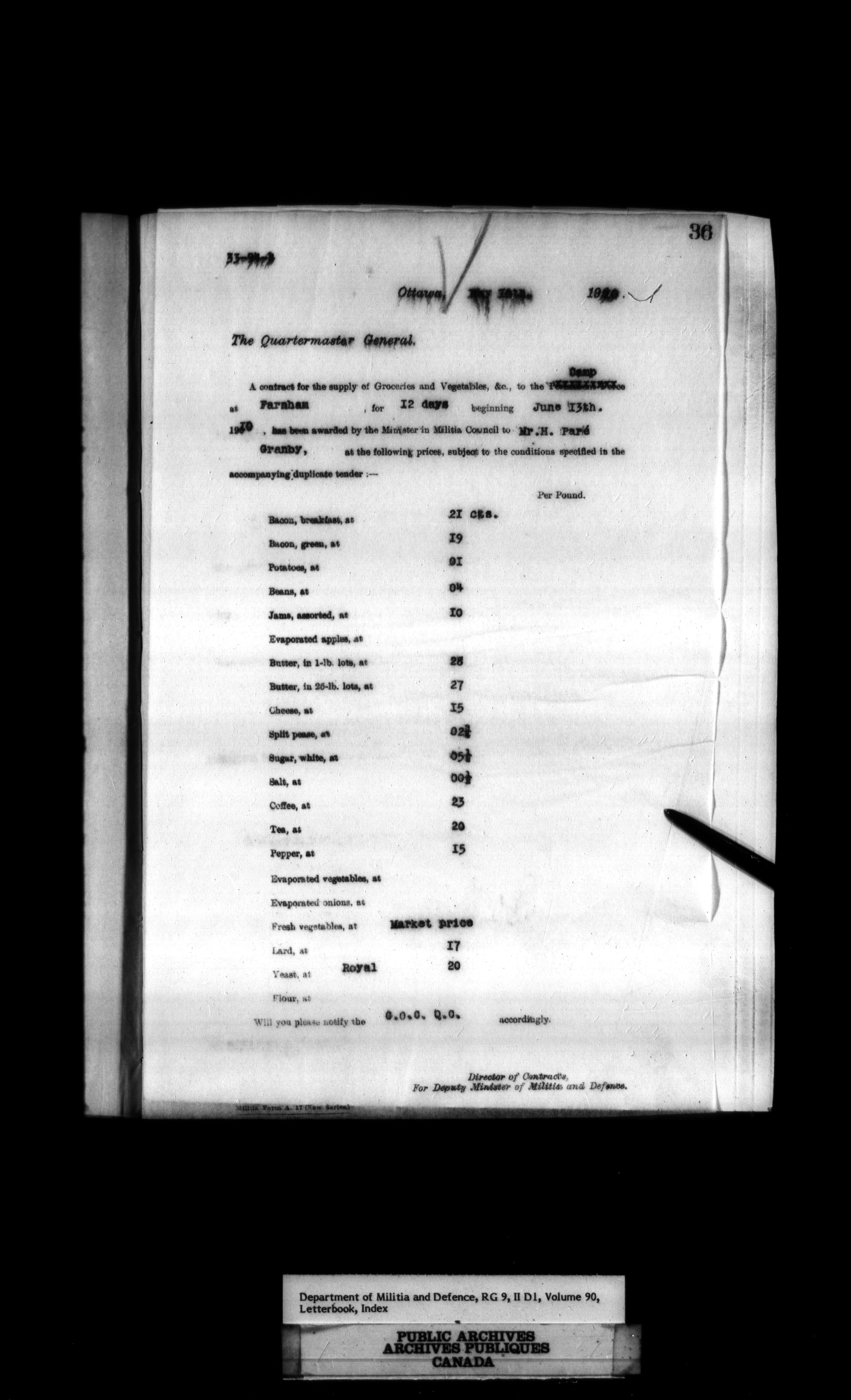 Department of Militia and Defence. Contracts Branch : Letterbooks, 1895-1912 : T-419