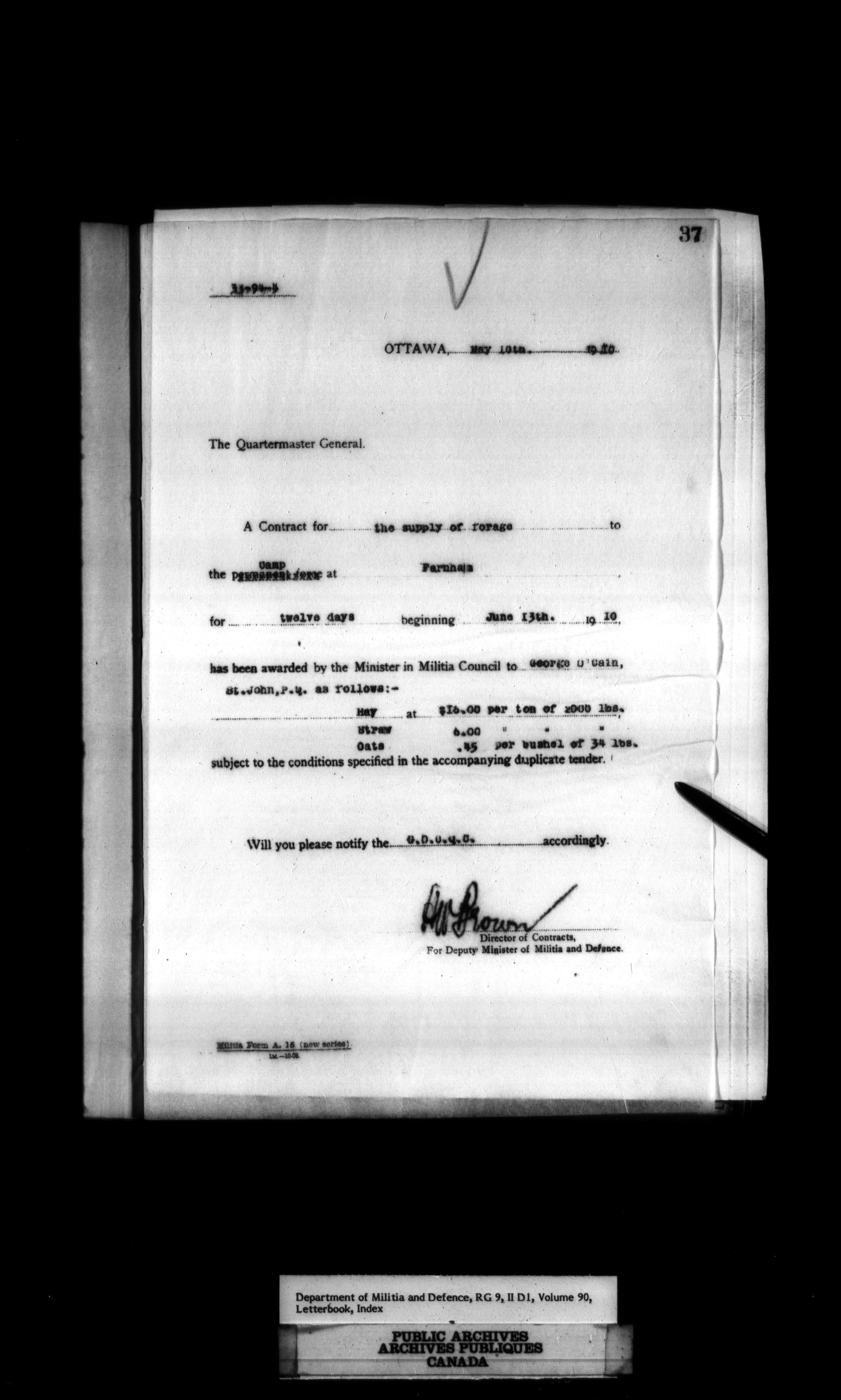 Department of Militia and Defence. Contracts Branch : Letterbooks, 1895-1912 : T-419