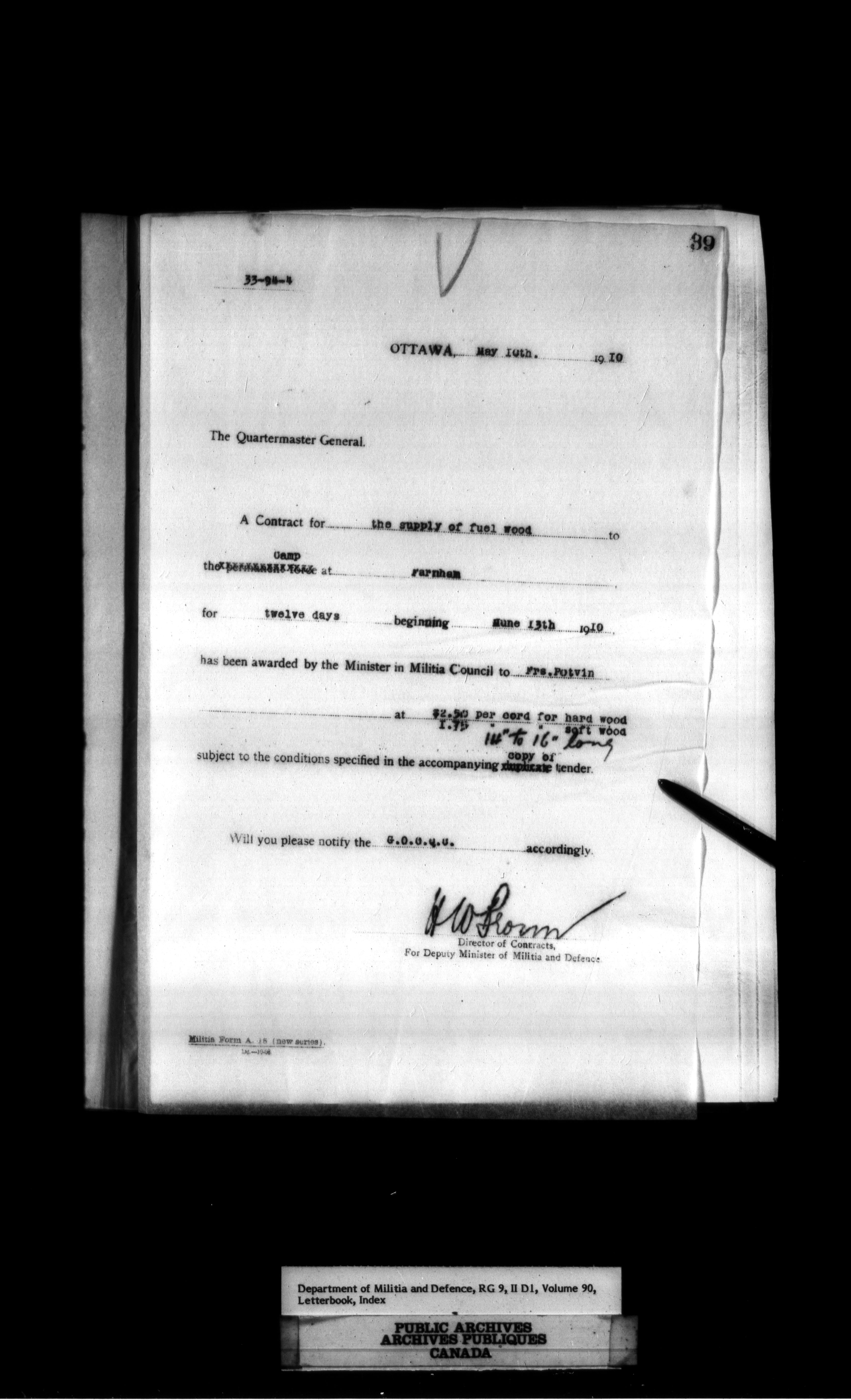 Department of Militia and Defence : Contracts Branch letterbooks, 1895-1912 - 419