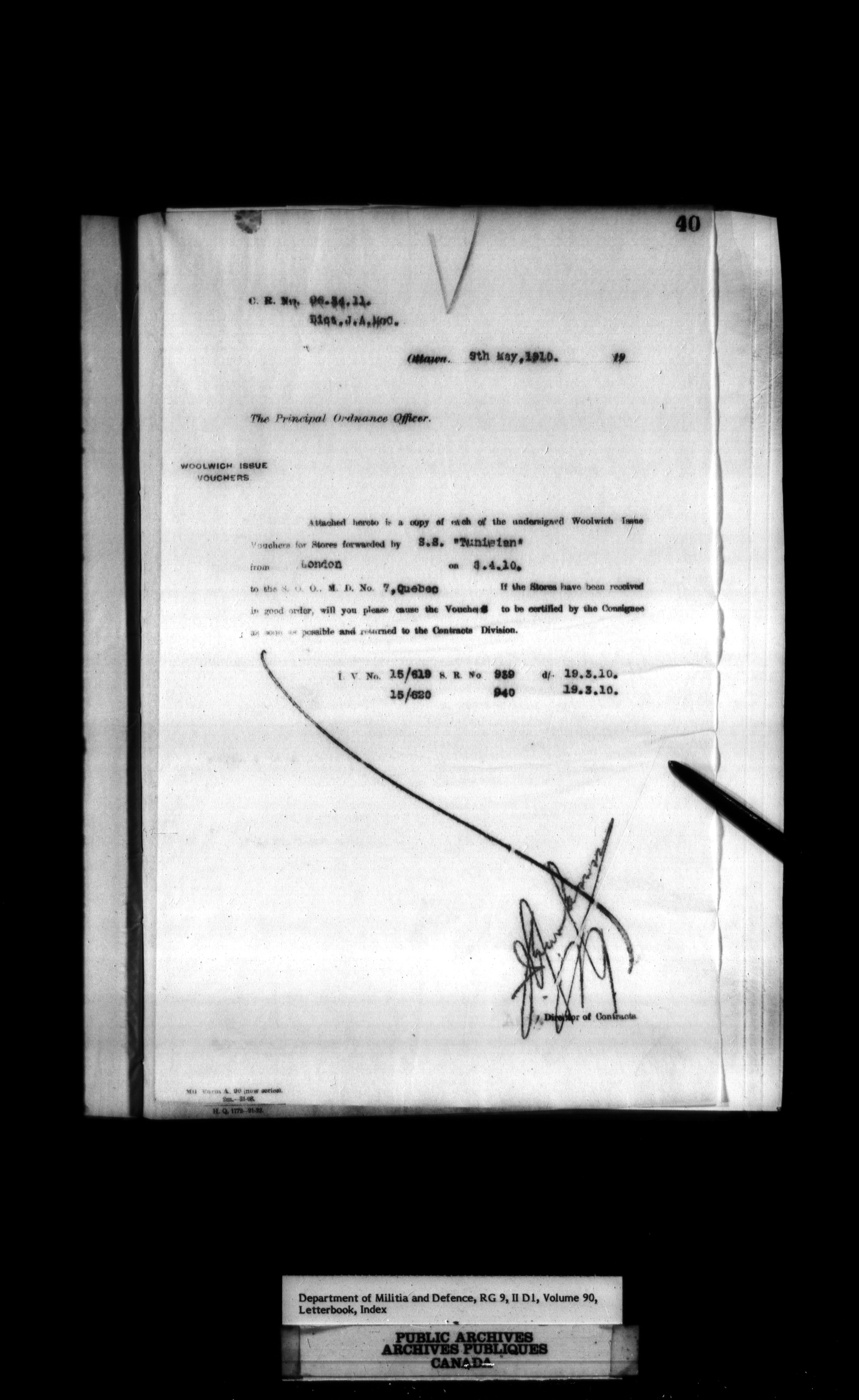 Department of Militia and Defence. Contracts Branch : Letterbooks, 1895-1912 : T-419