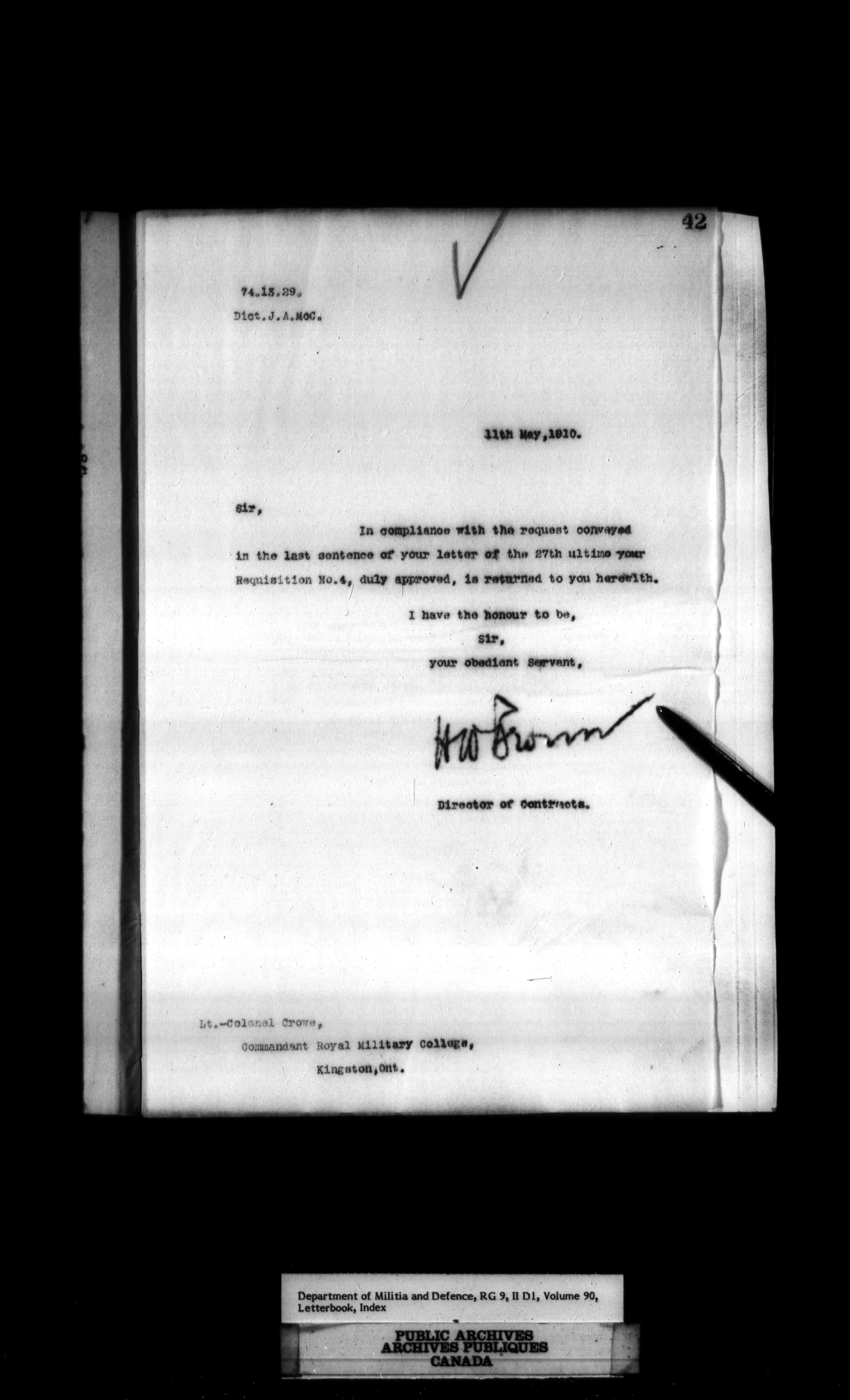 Department of Militia and Defence. Contracts Branch : Letterbooks, 1895-1912 : T-419