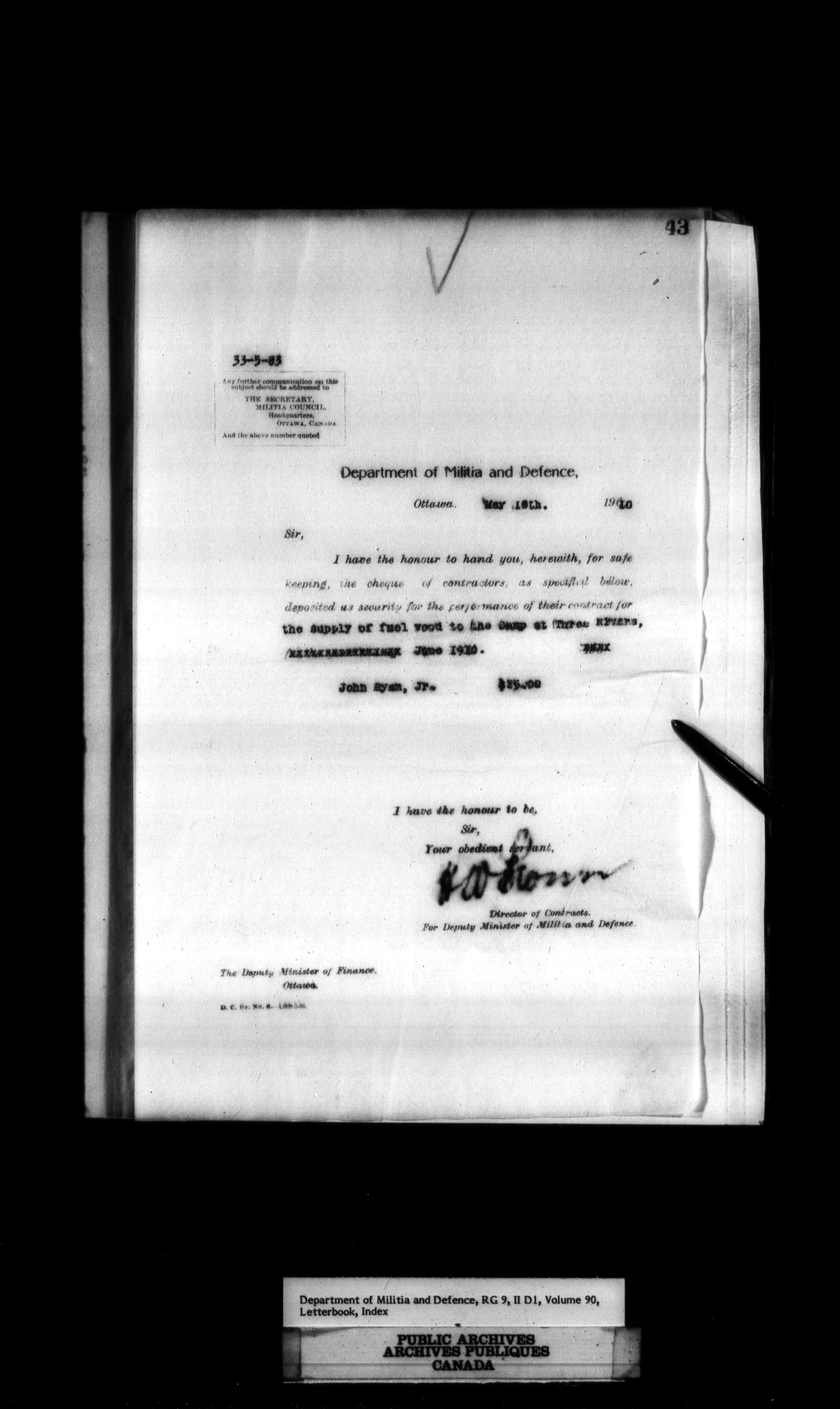 Department of Militia and Defence : Contracts Branch letterbooks, 1895-1912 - 419