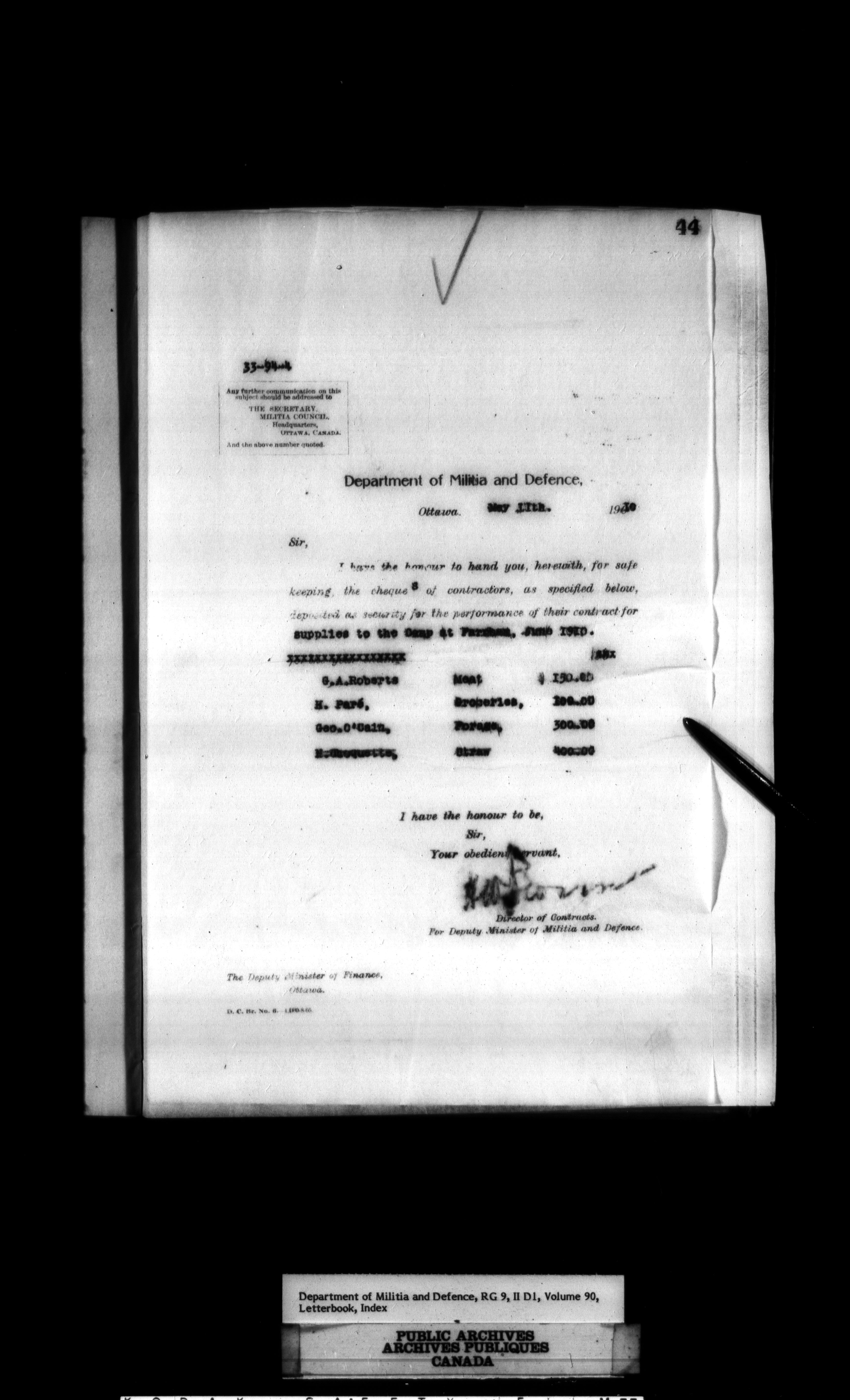 Department of Militia and Defence. Contracts Branch : Letterbooks, 1895-1912 : T-419
