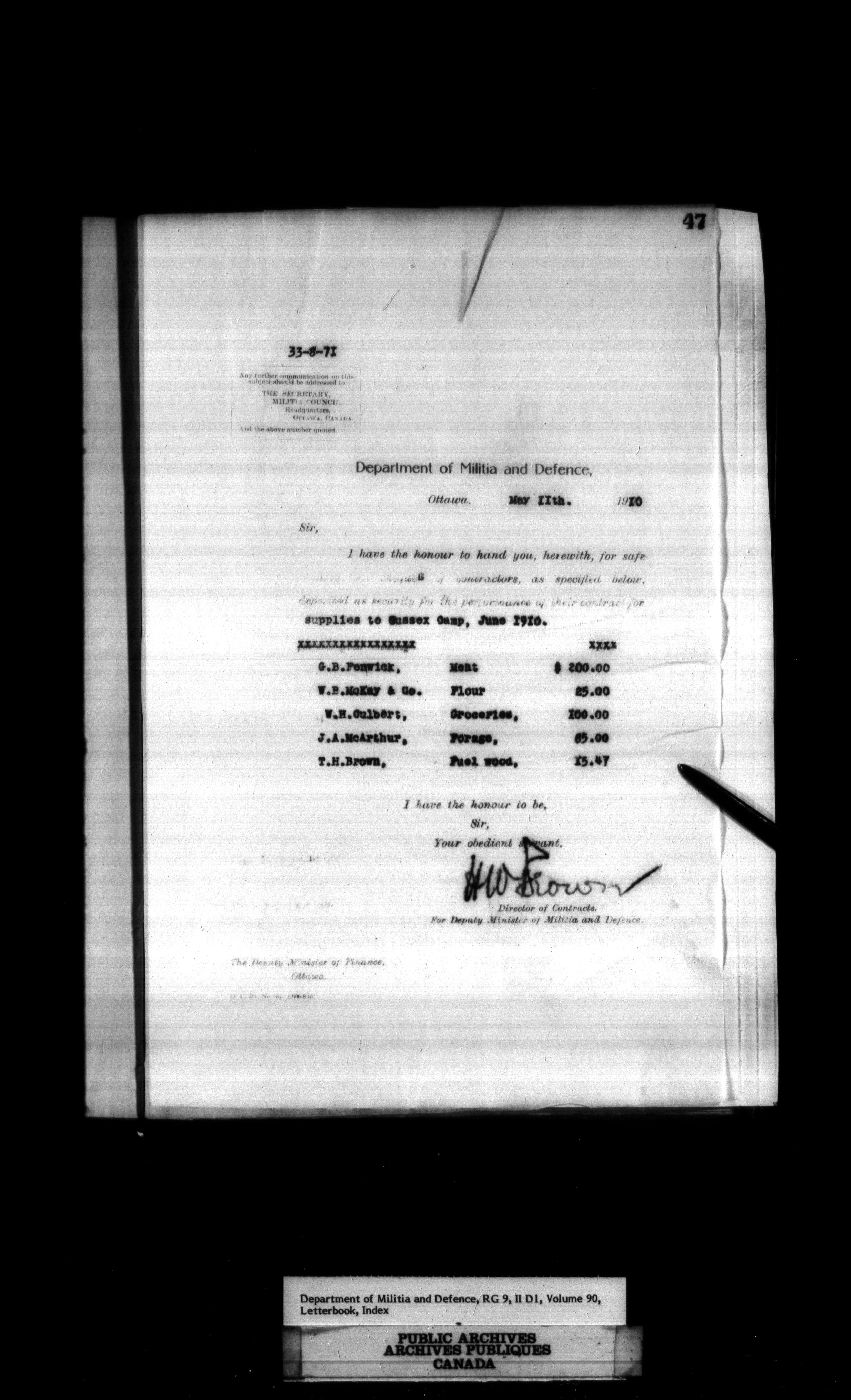 Department of Militia and Defence. Contracts Branch : Letterbooks, 1895-1912 : T-419