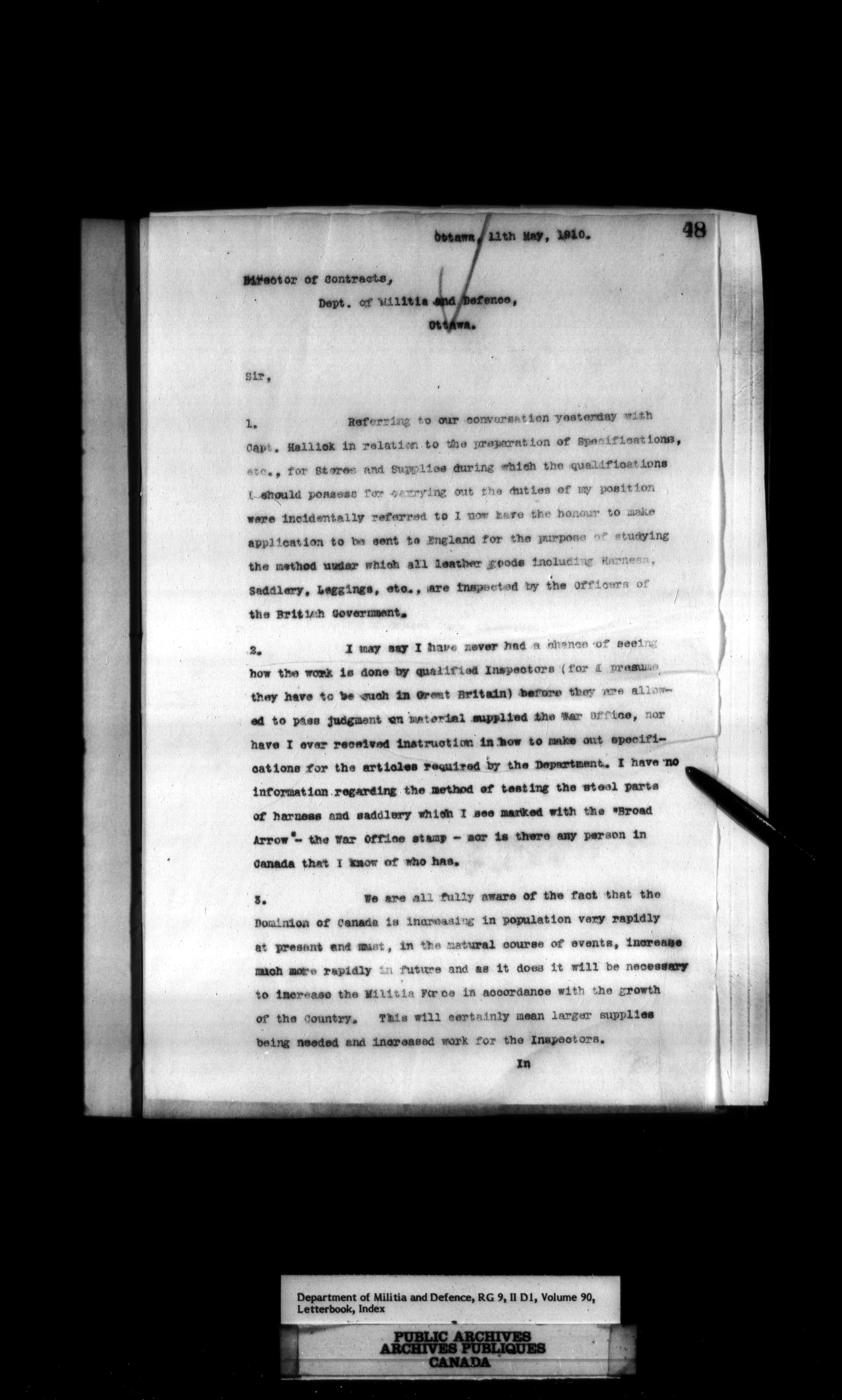 Department of Militia and Defence : Contracts Branch letterbooks, 1895-1912 - 419