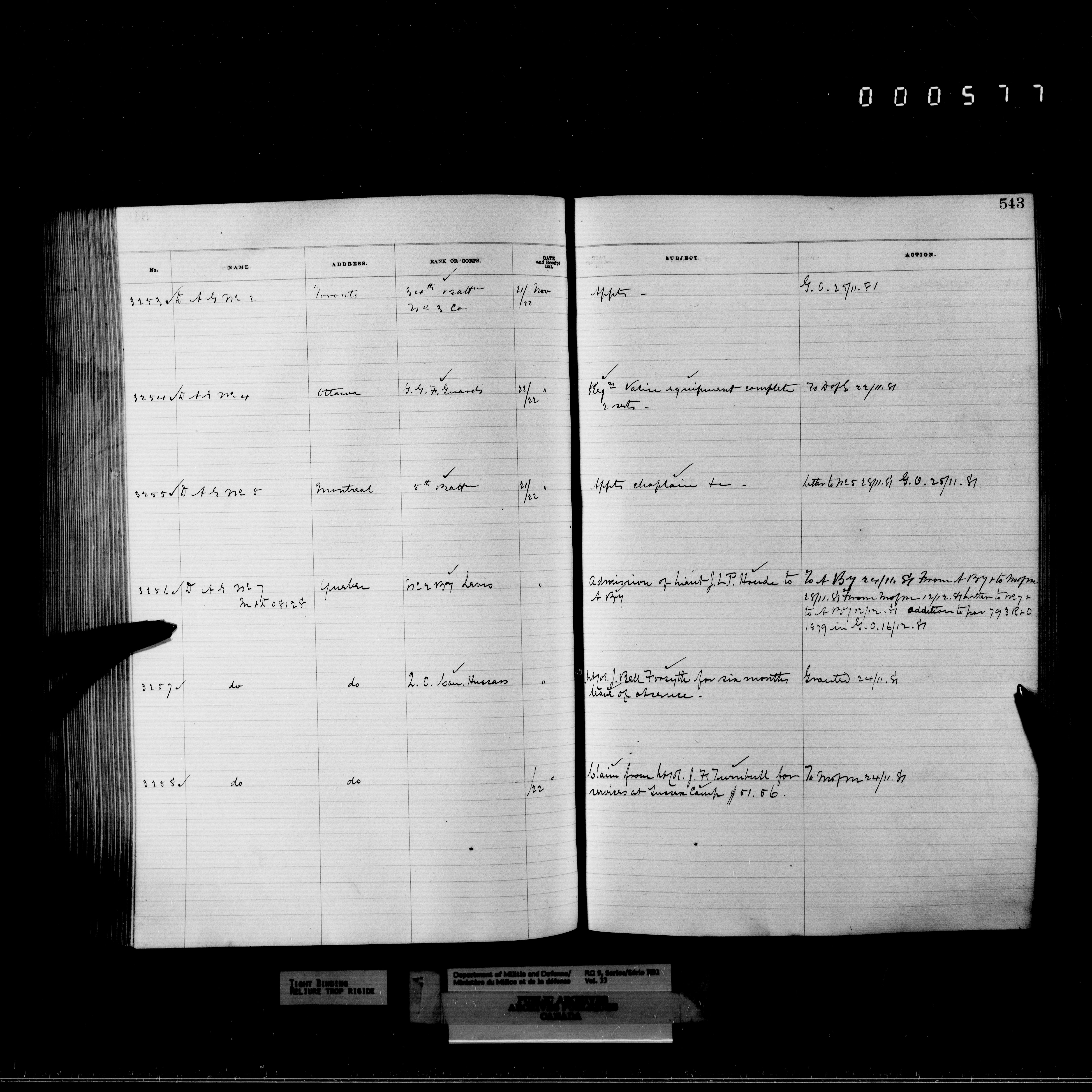 Correspondence of the General Officer Commanding (GOC) of the Canadian Militia and his predecessor, the Adjutant General : T-4192