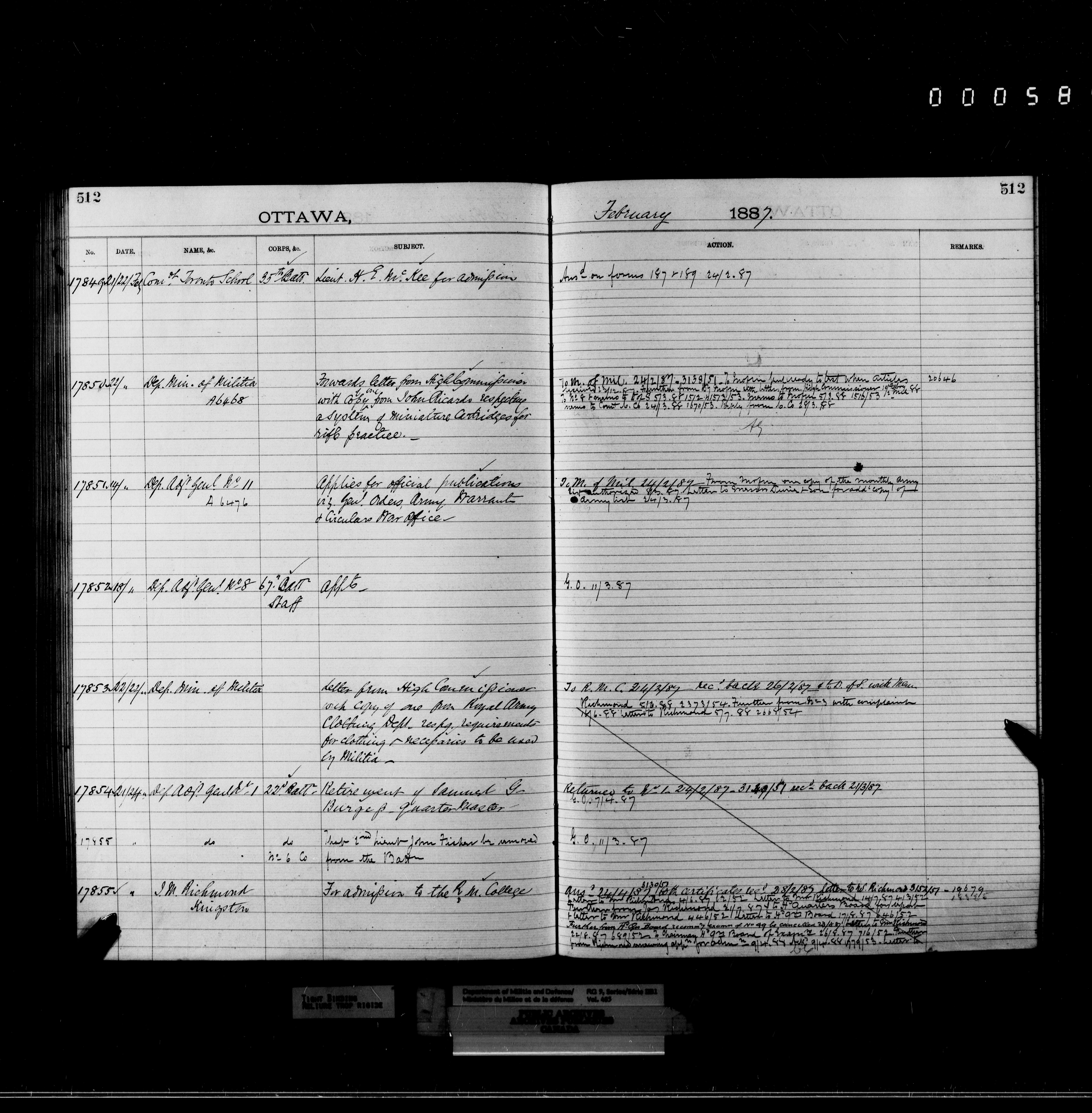 Correspondence of the General Officer Commanding (GOC) of the Canadian Militia and his predecessor, the Adjutant General : T-4196
