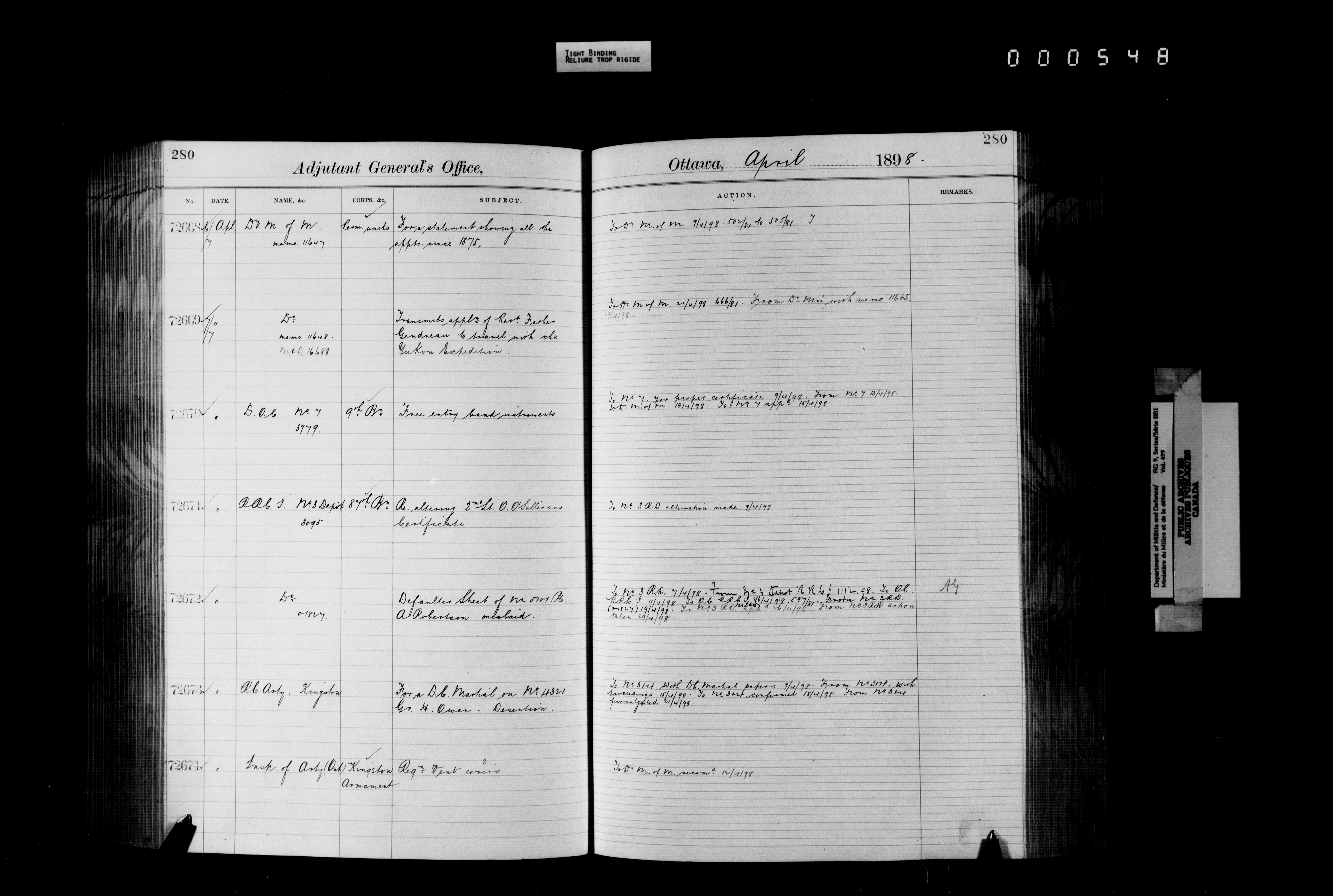 Correspondence of the General Officer Commanding (GOC) of the Canadian Militia and his predecessor, the Adjutant General : T-4209