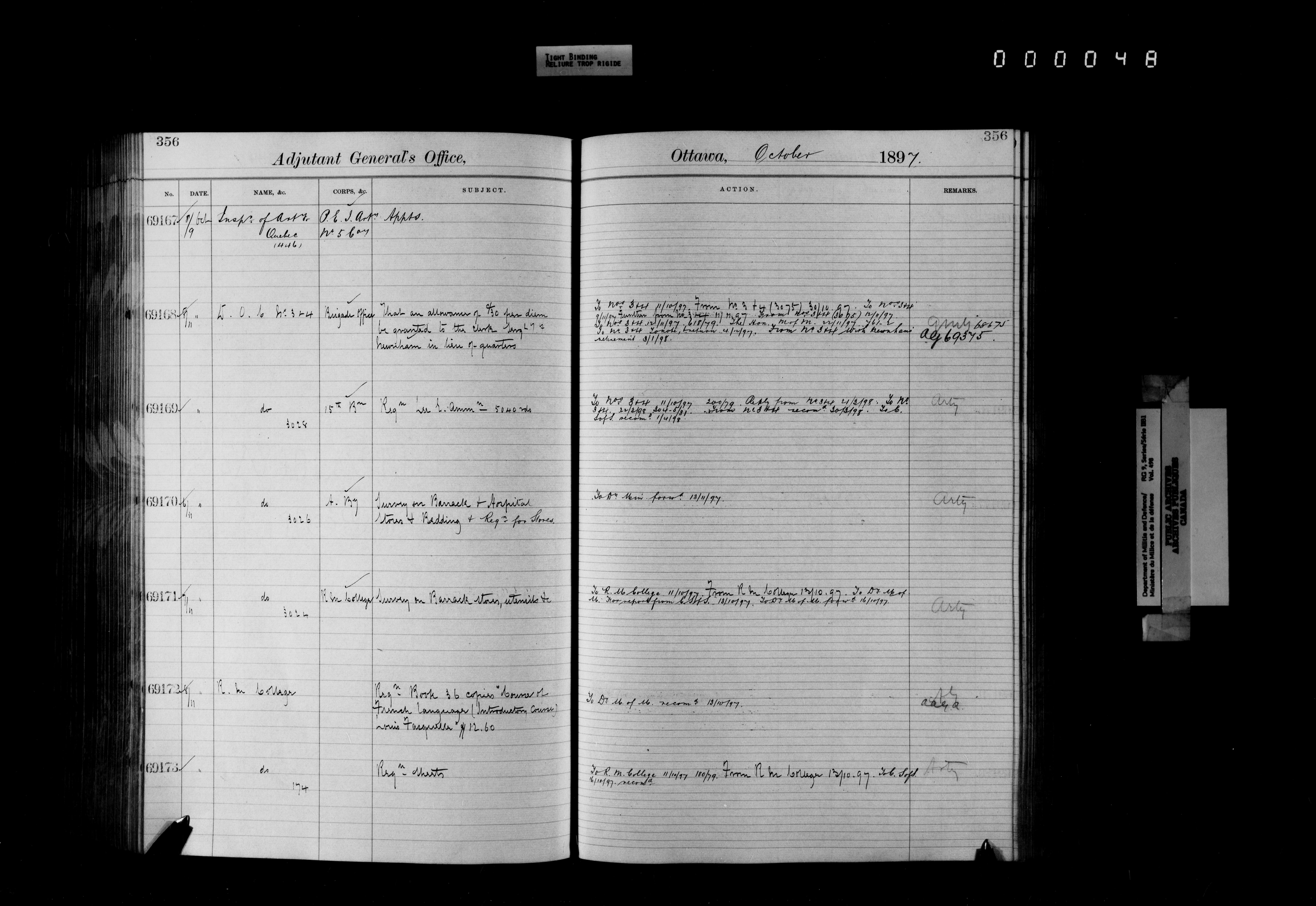 Correspondence of the General Officer Commanding (GOC) of the Canadian Militia and his predecessor, the Adjutant General : T-4209