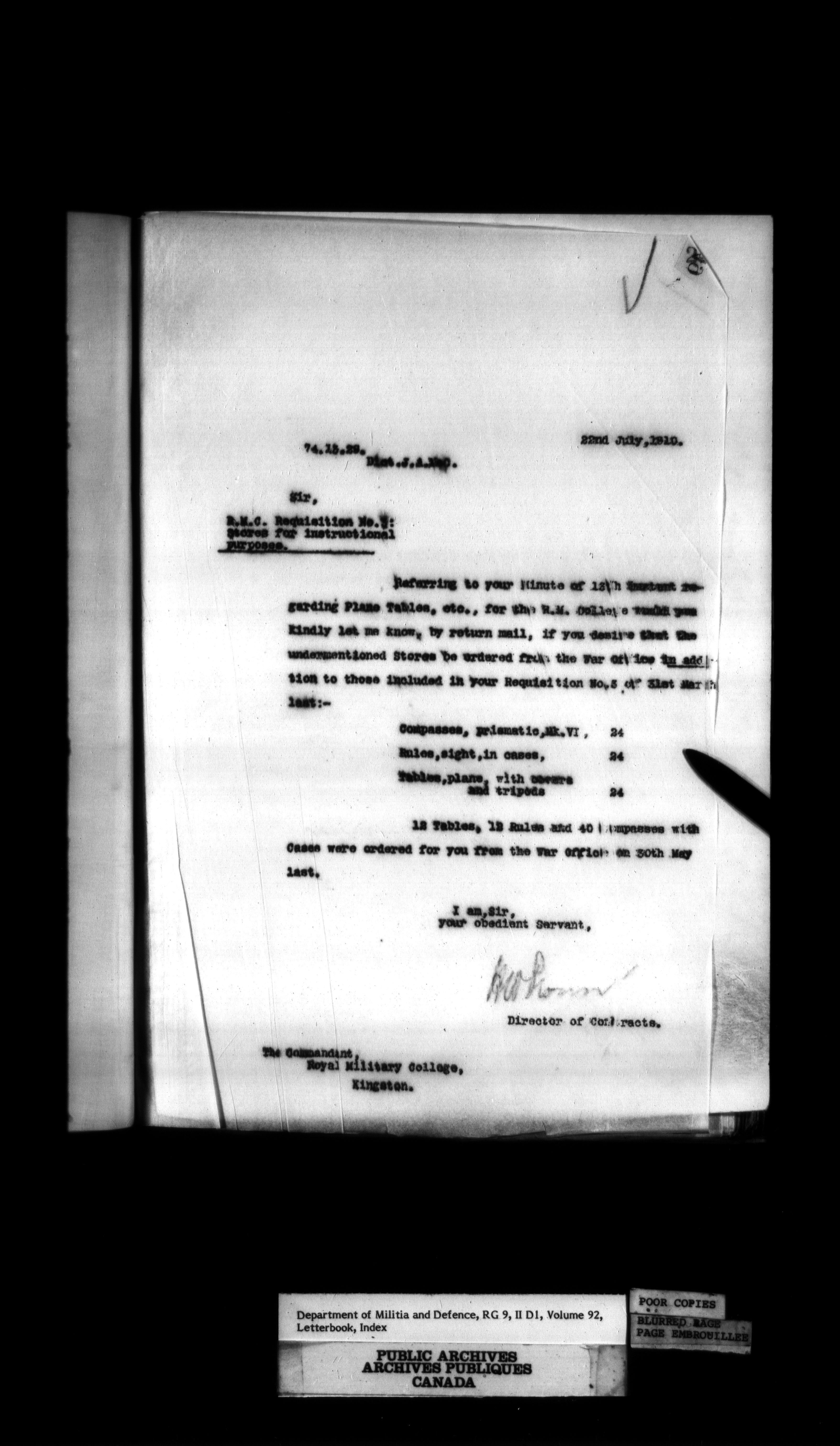 Department of Militia and Defence : Contracts Branch letterbooks, 1895-1912 - 421
