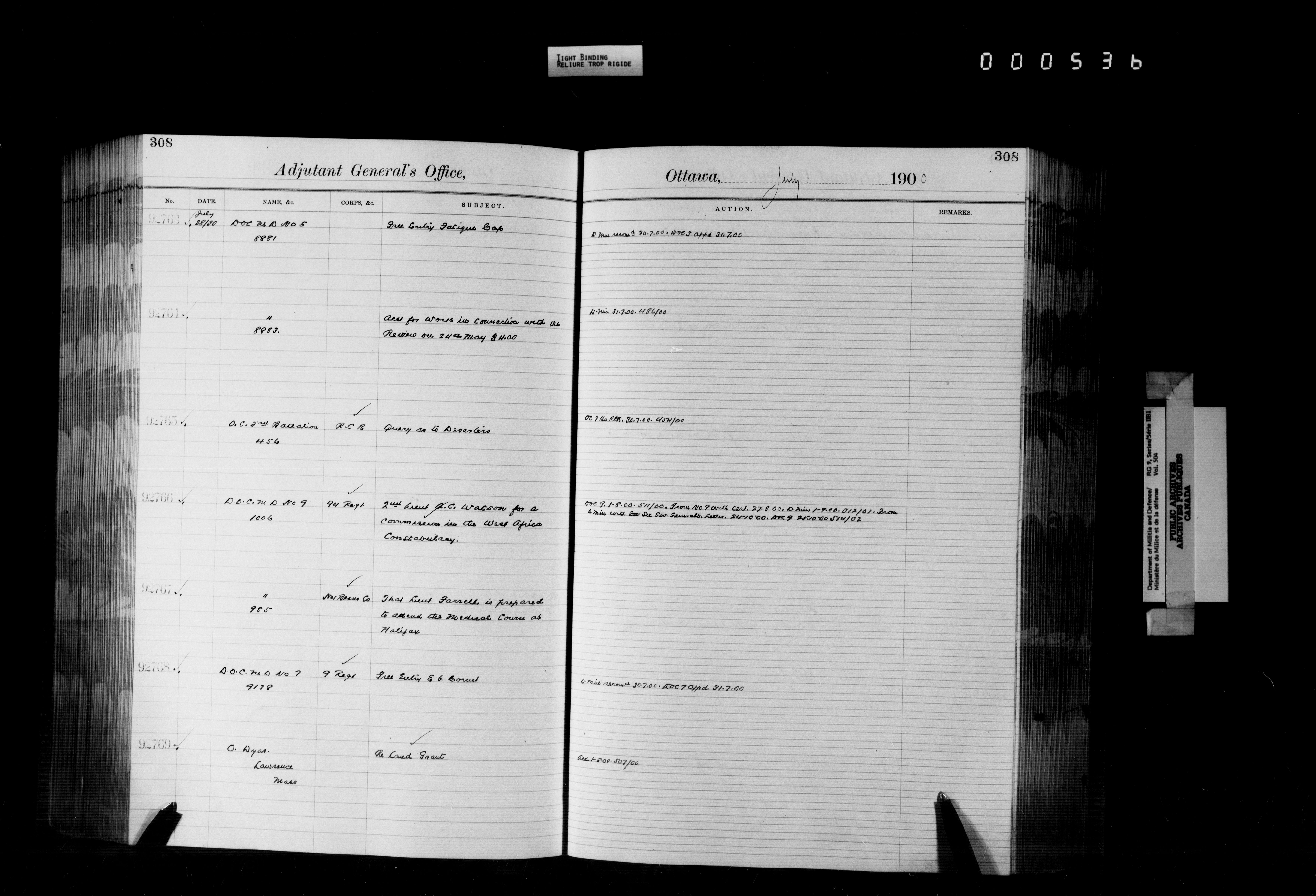 Correspondence of the General Officer Commanding (GOC) of the Canadian Militia and his predecessor, the Adjutant General : T-4214