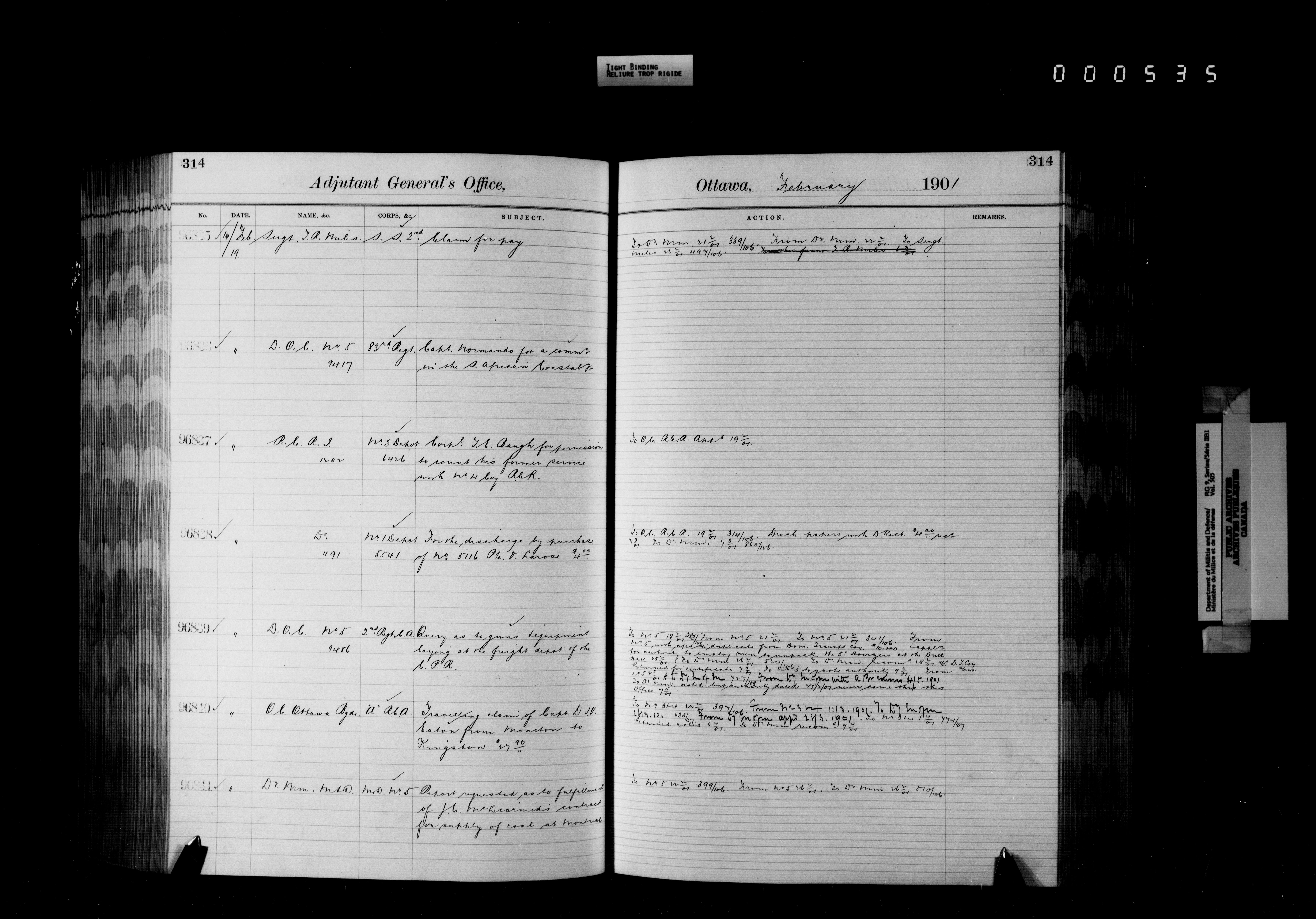Correspondence of the General Officer Commanding (GOC) of the Canadian Militia and his predecessor, the Adjutant General : T-4215
