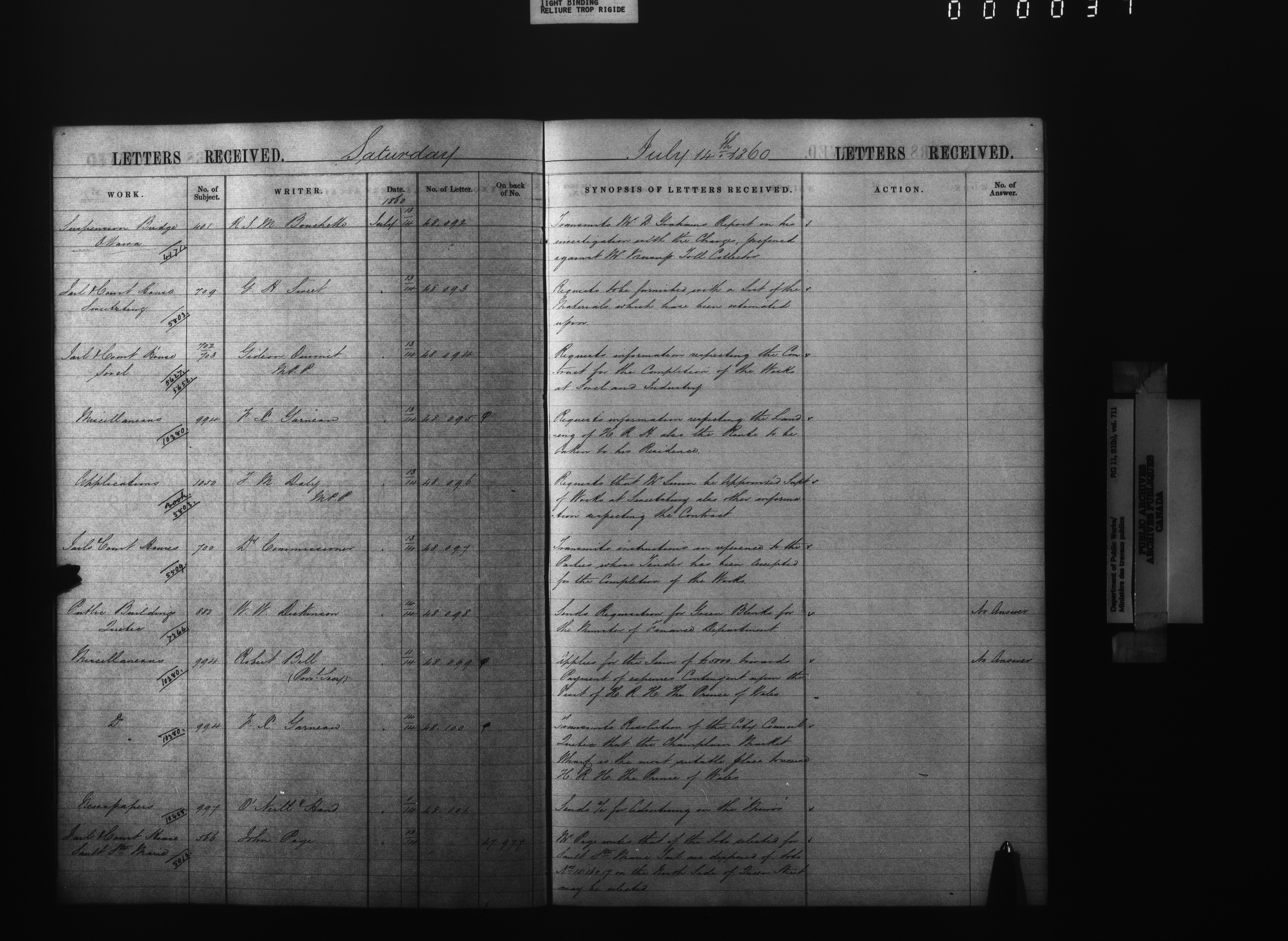 Department of Public Works, Docket registry system : Registers of correspondence received : T-4222