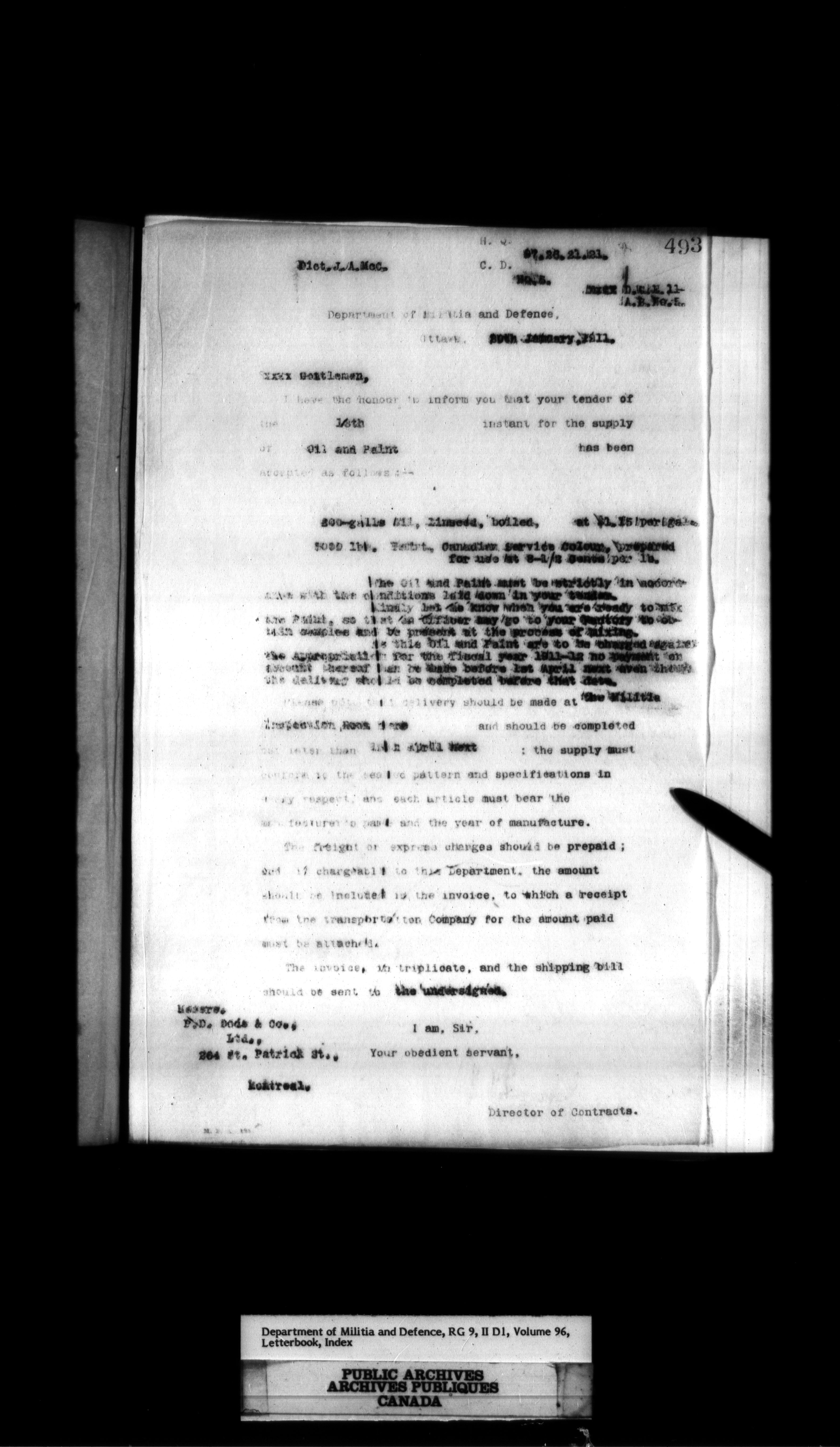 Department of Militia and Defence : Contracts Branch letterbooks, 1895-1912 - 423