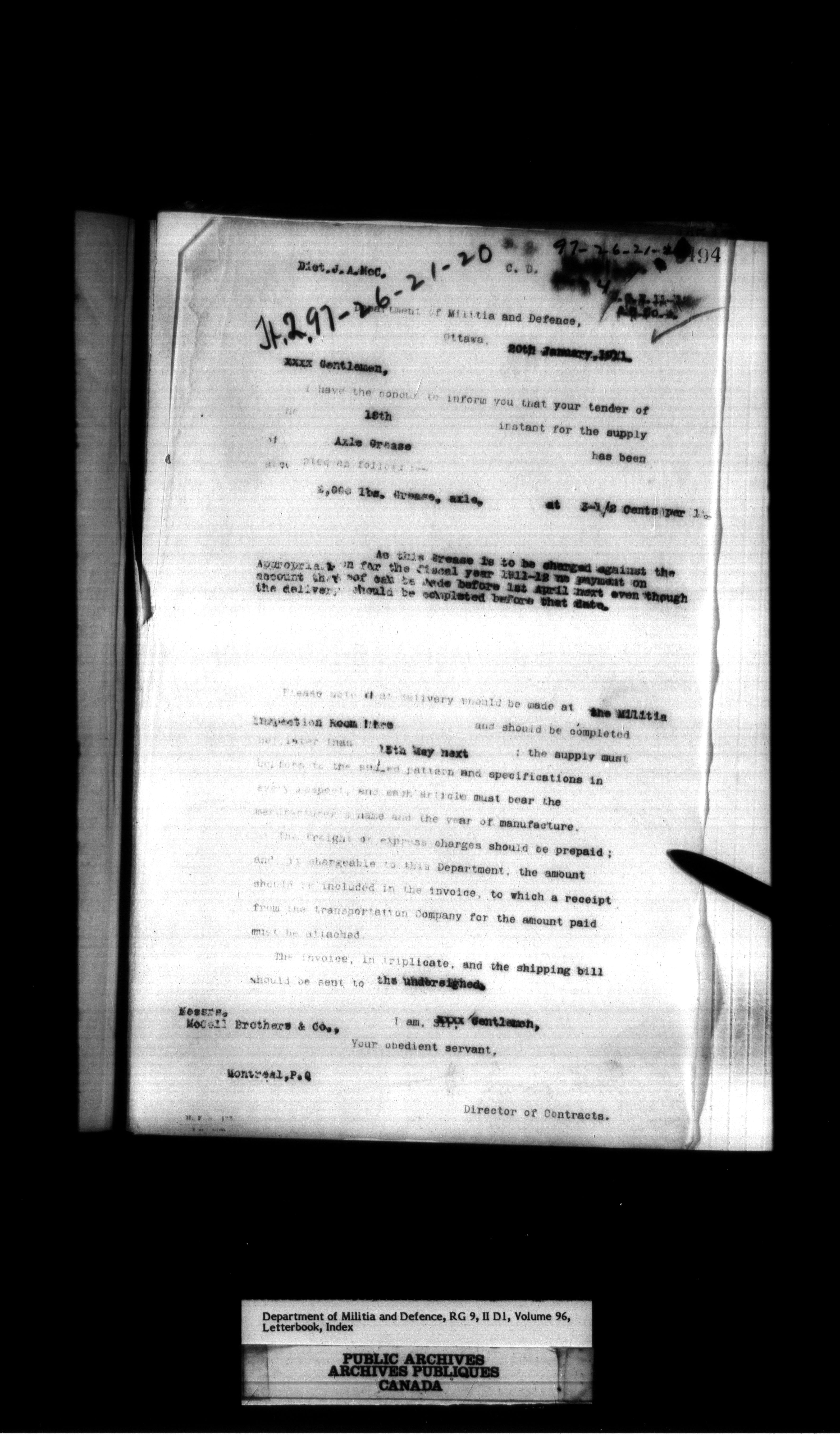 Department of Militia and Defence : Contracts Branch letterbooks, 1895-1912 - 423