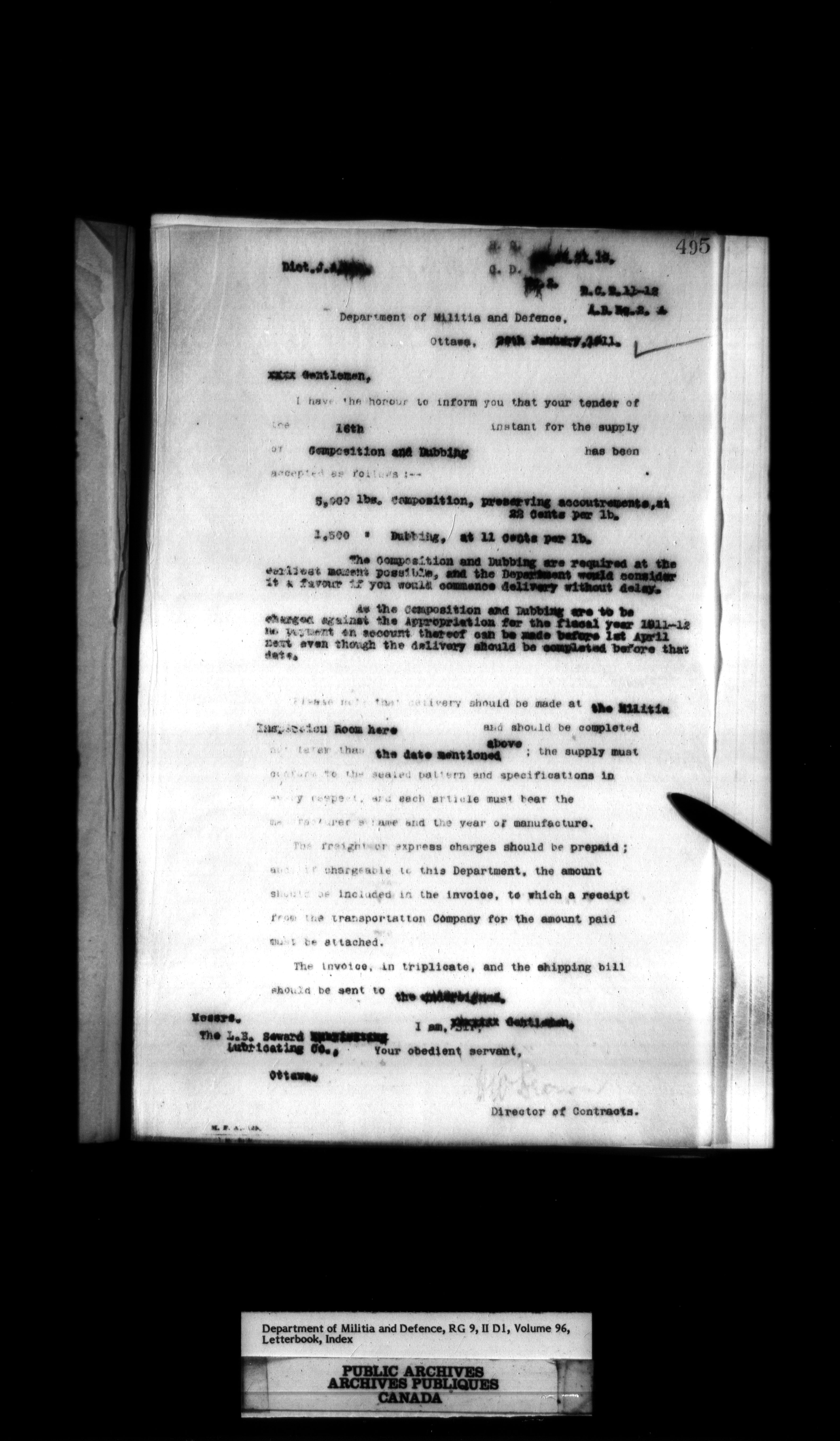 Department of Militia and Defence : Contracts Branch letterbooks, 1895-1912 - 423