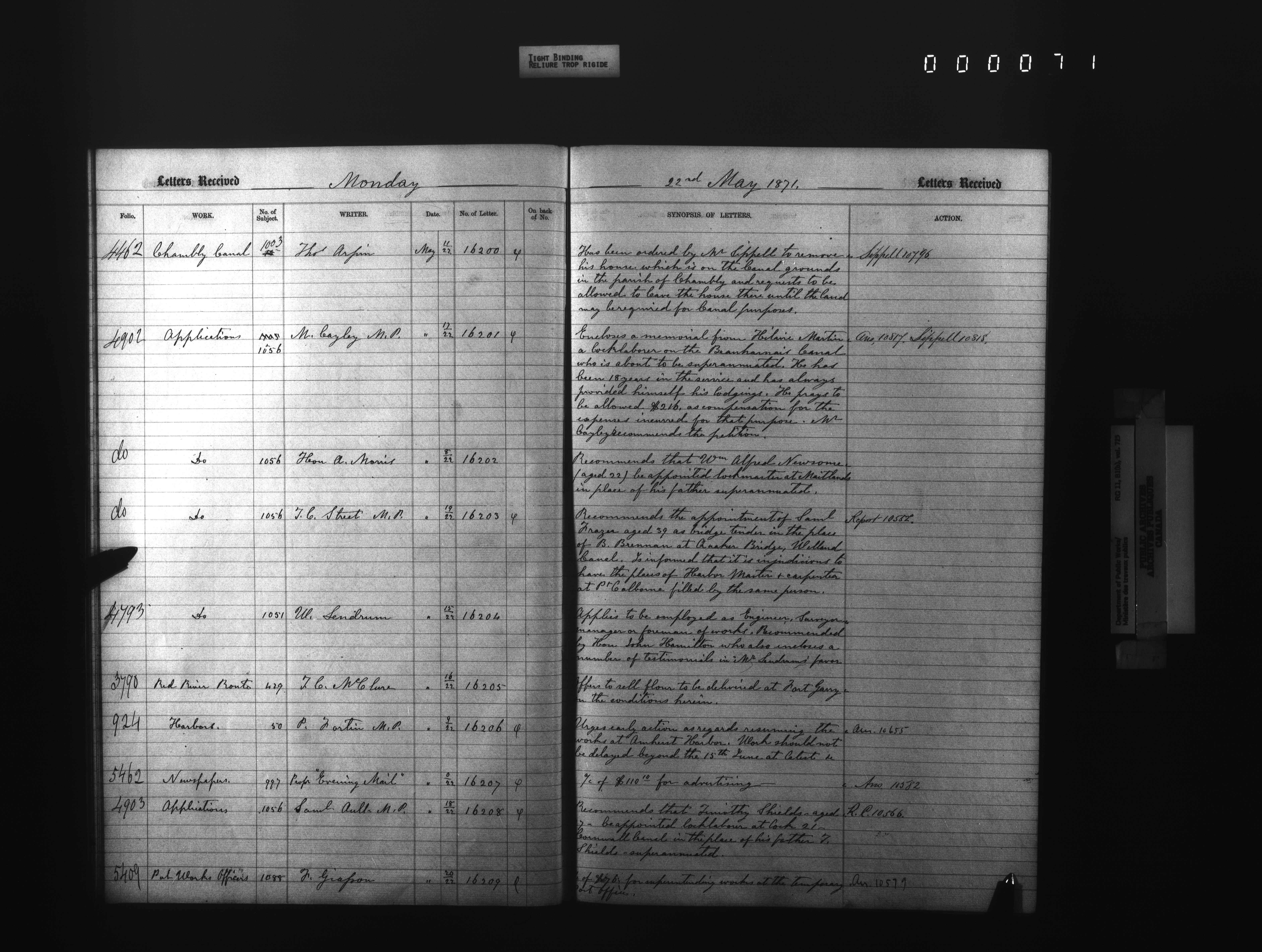 Department of Public Works, Docket registry system : Registers of correspondence received : T-4230