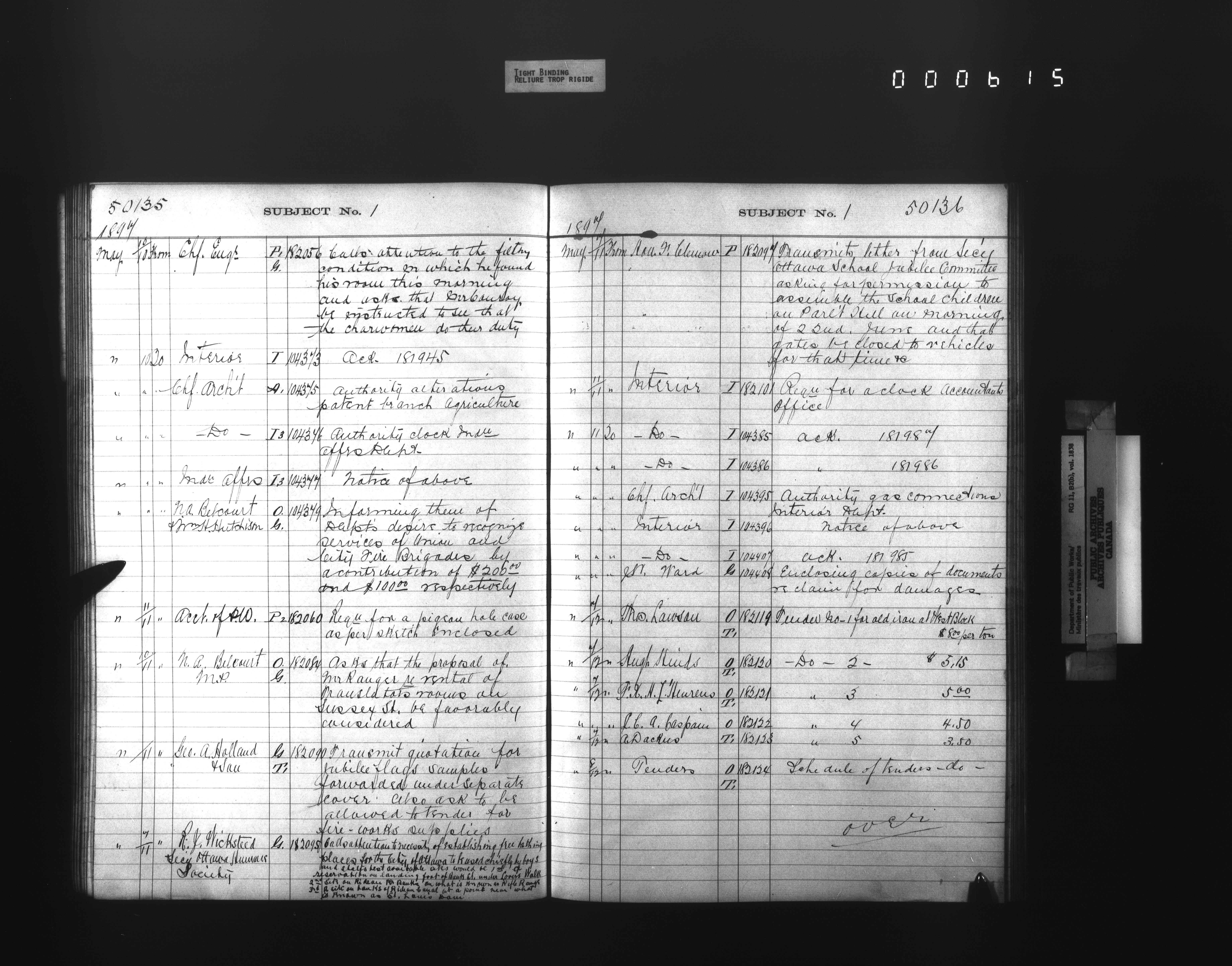 Public Works registers of all incoming and outgoing correspondence arranged by the subject number - 4250