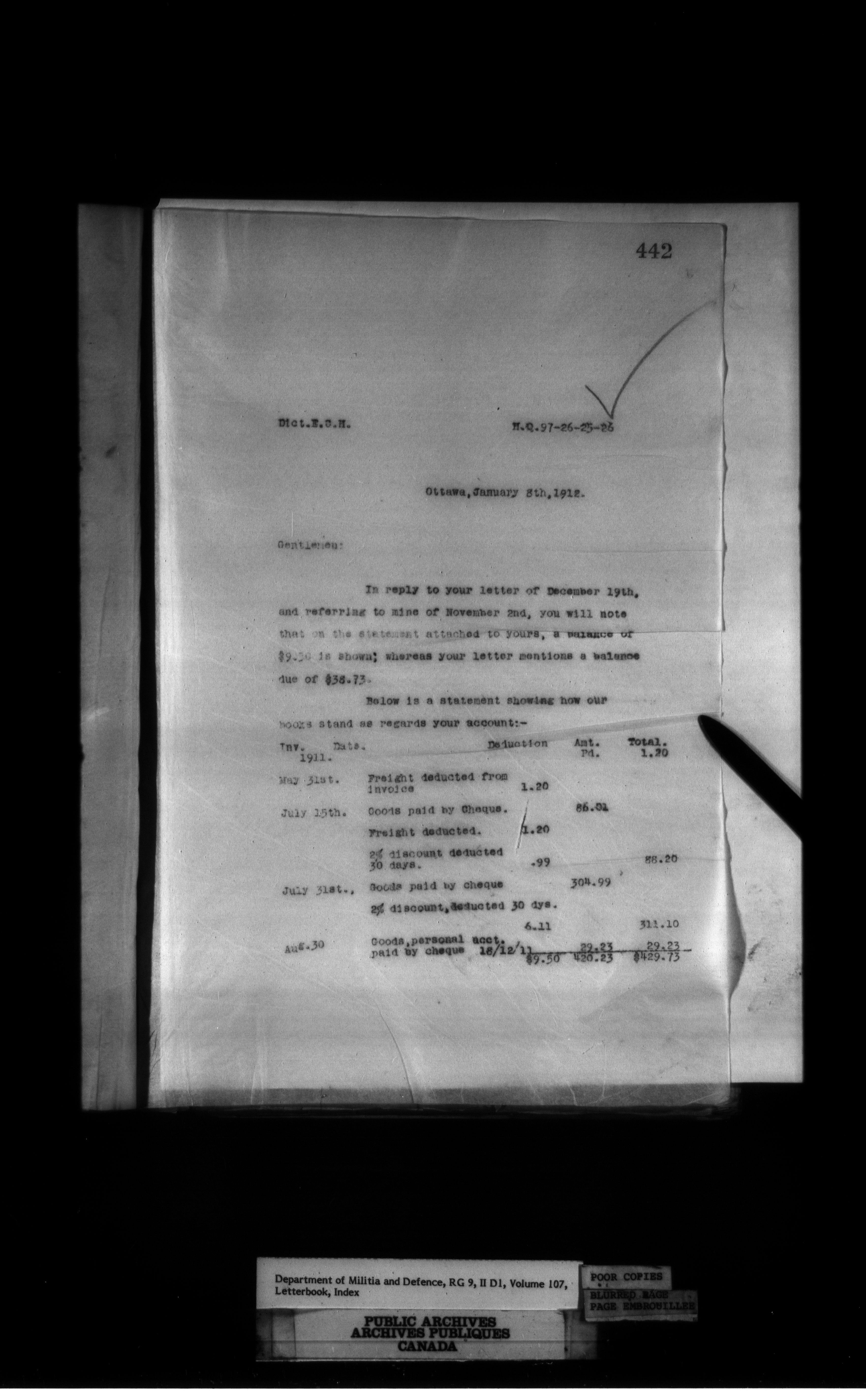 Department of Militia and Defence : Contracts Branch letterbooks, 1895-1912 - 427