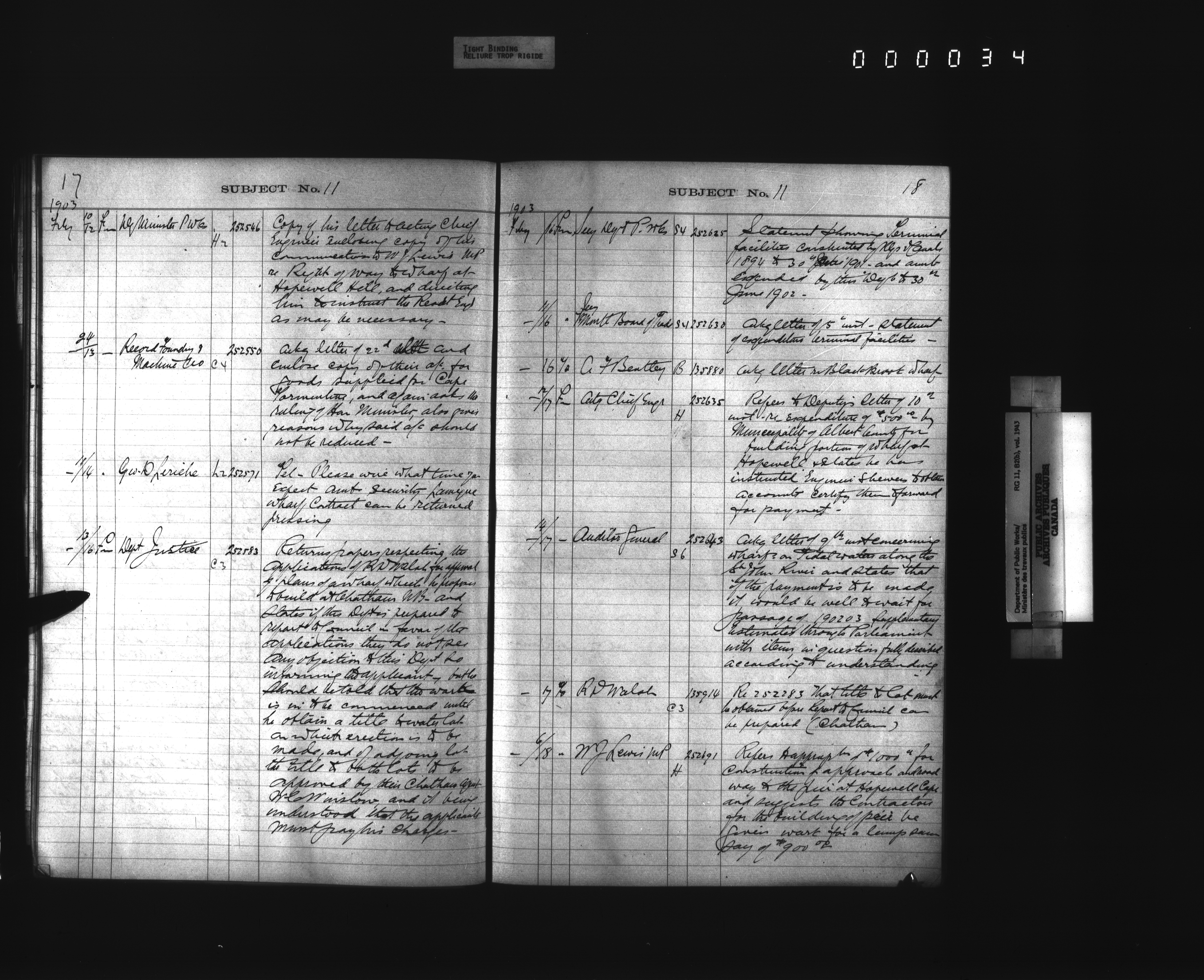 Public Works registers of all incoming and outgoing correspondence arranged by the subject number - 4274