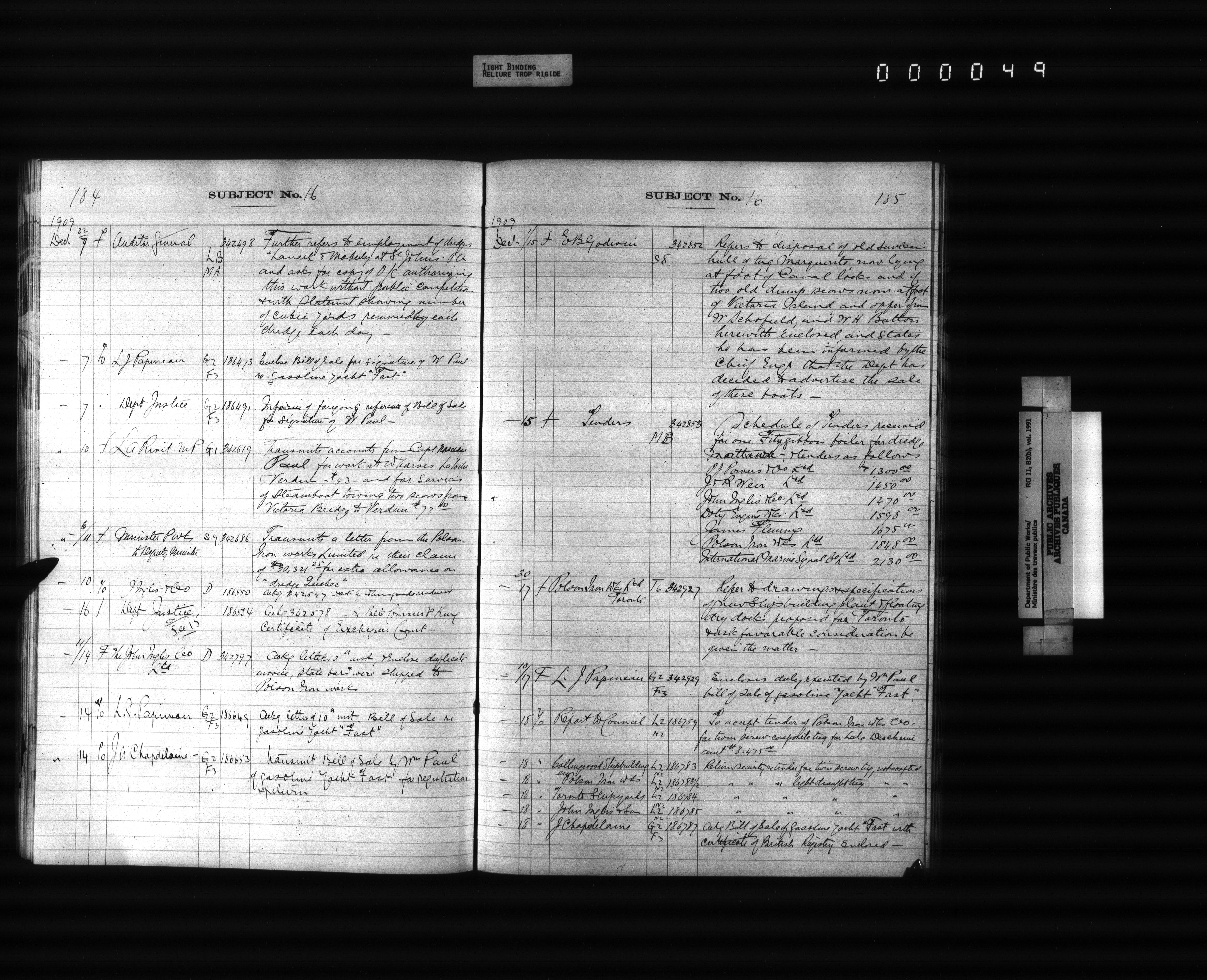 Public Works registers of all incoming and outgoing correspondence arranged by the subject number - 4285