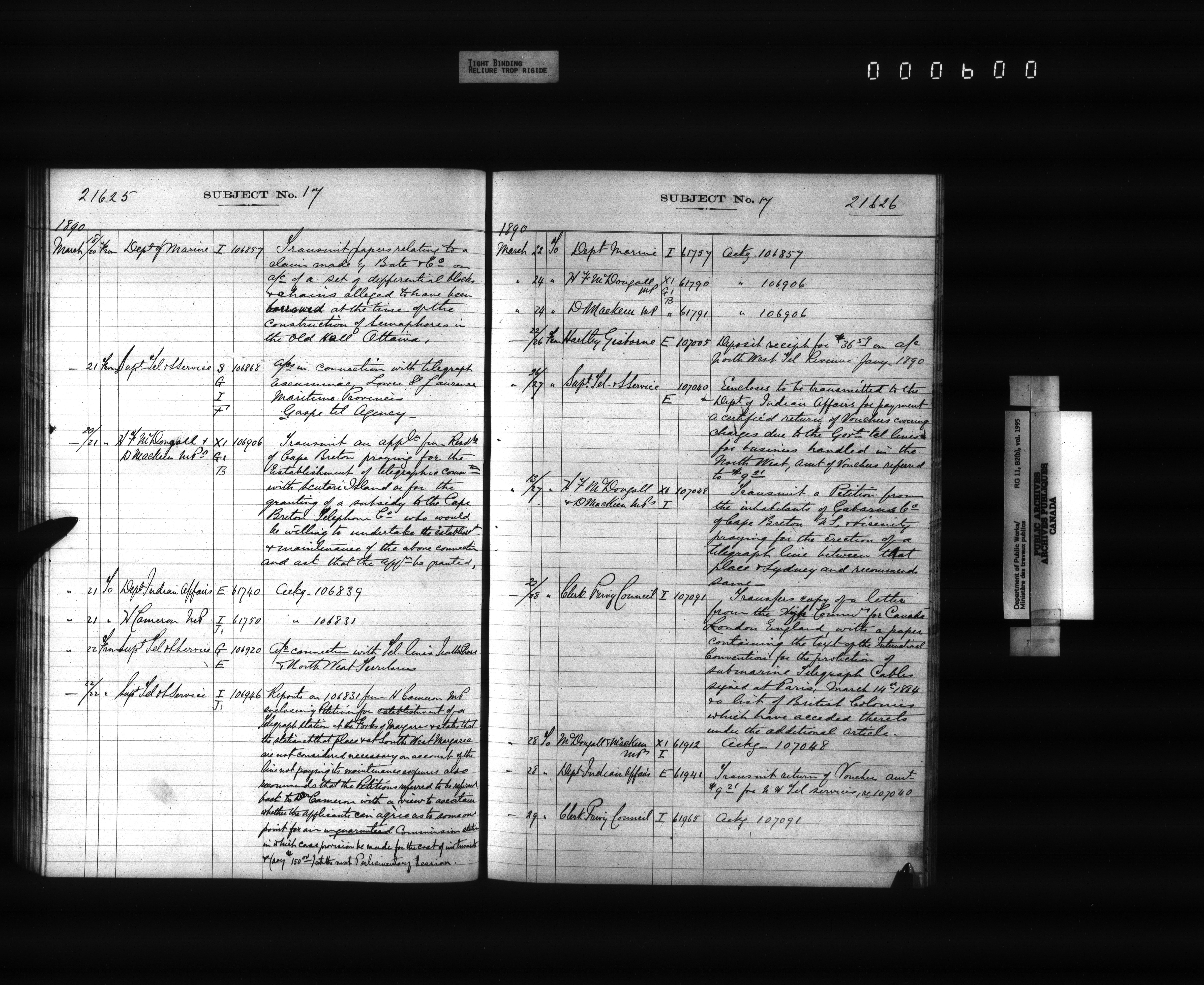 Public Works registers of all incoming and outgoing correspondence arranged by the subject number - 4285