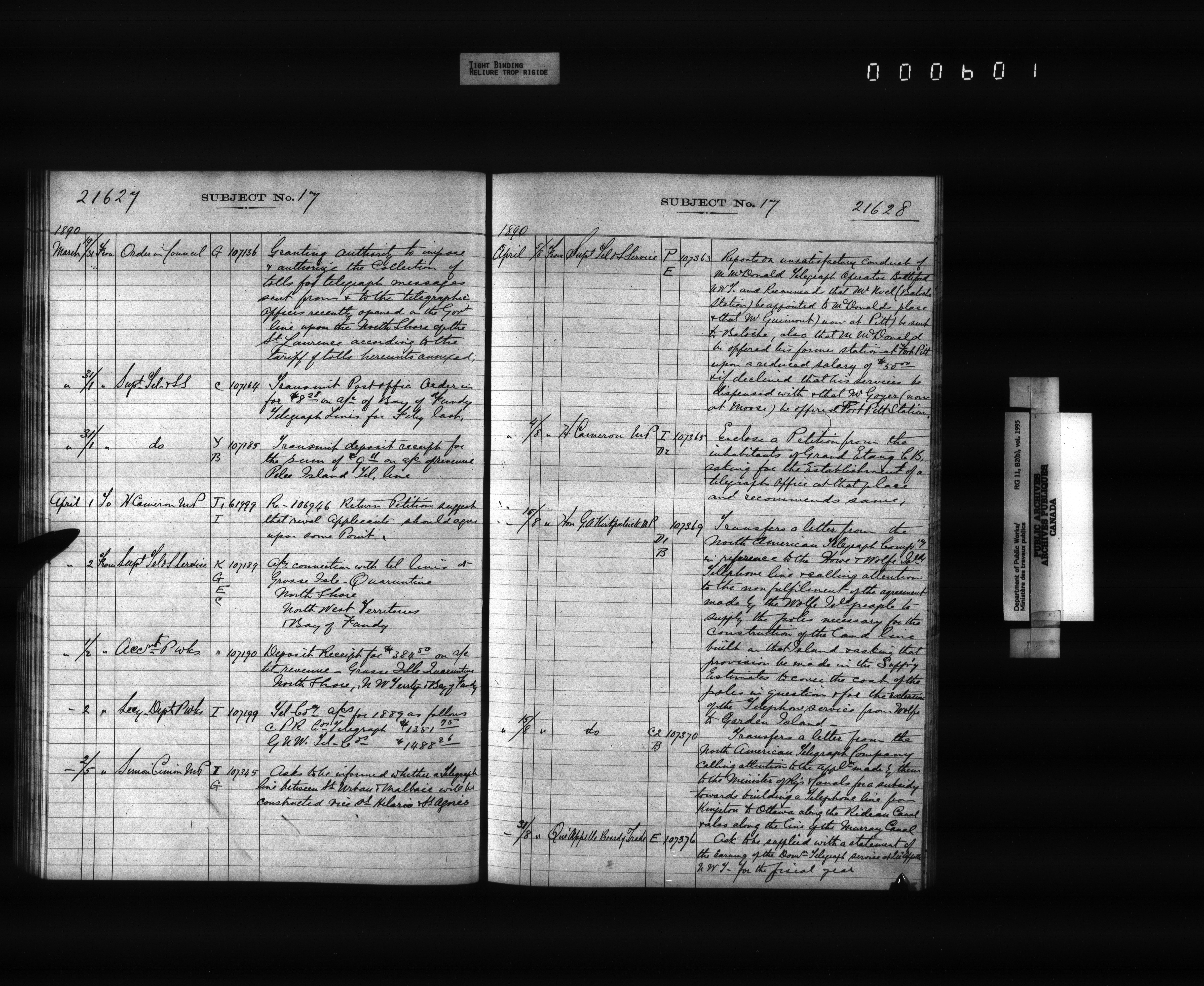 Public Works registers of all incoming and outgoing correspondence arranged by the subject number - 4285