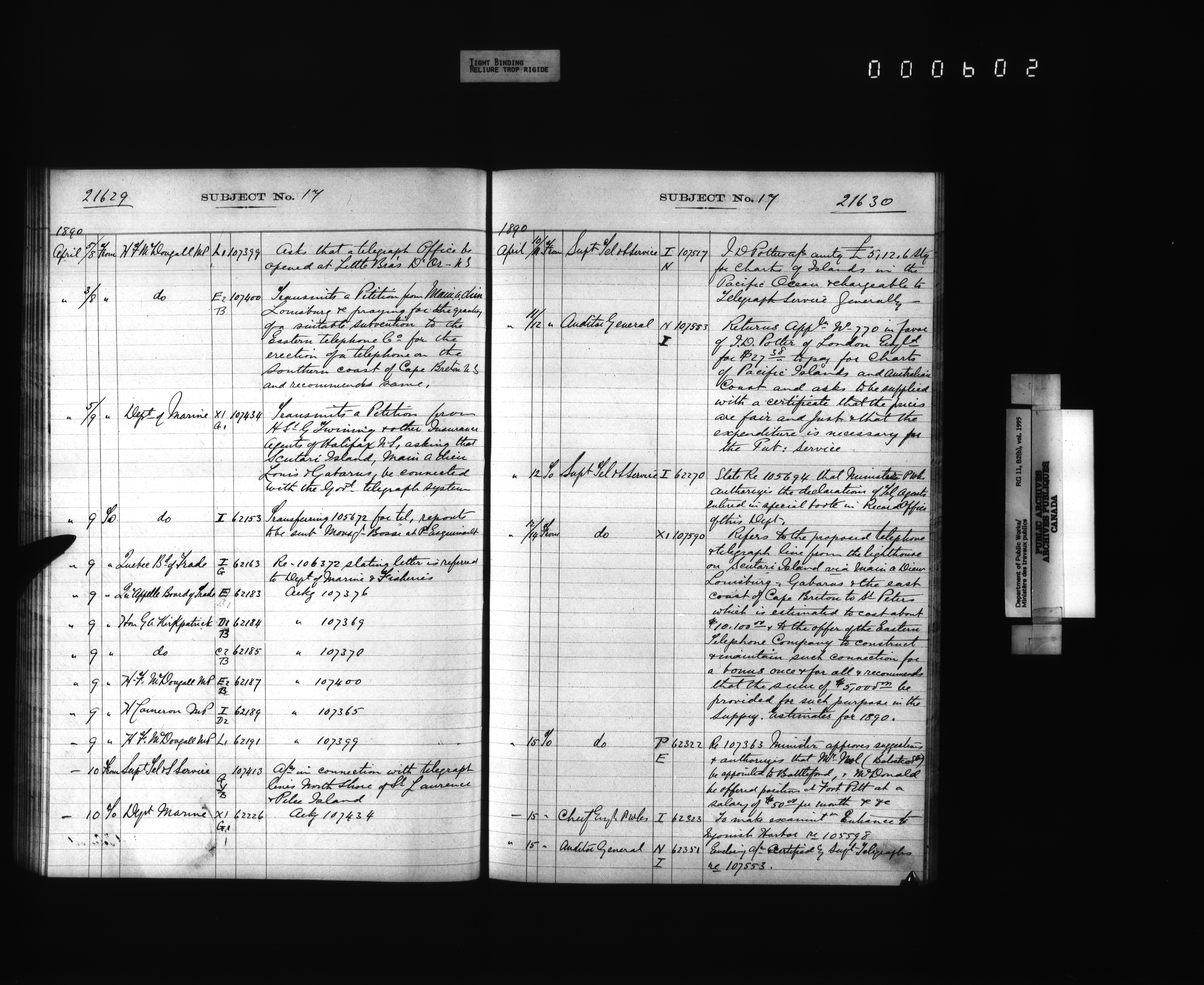 Public Works registers of all incoming and outgoing correspondence arranged by the subject number - 4285