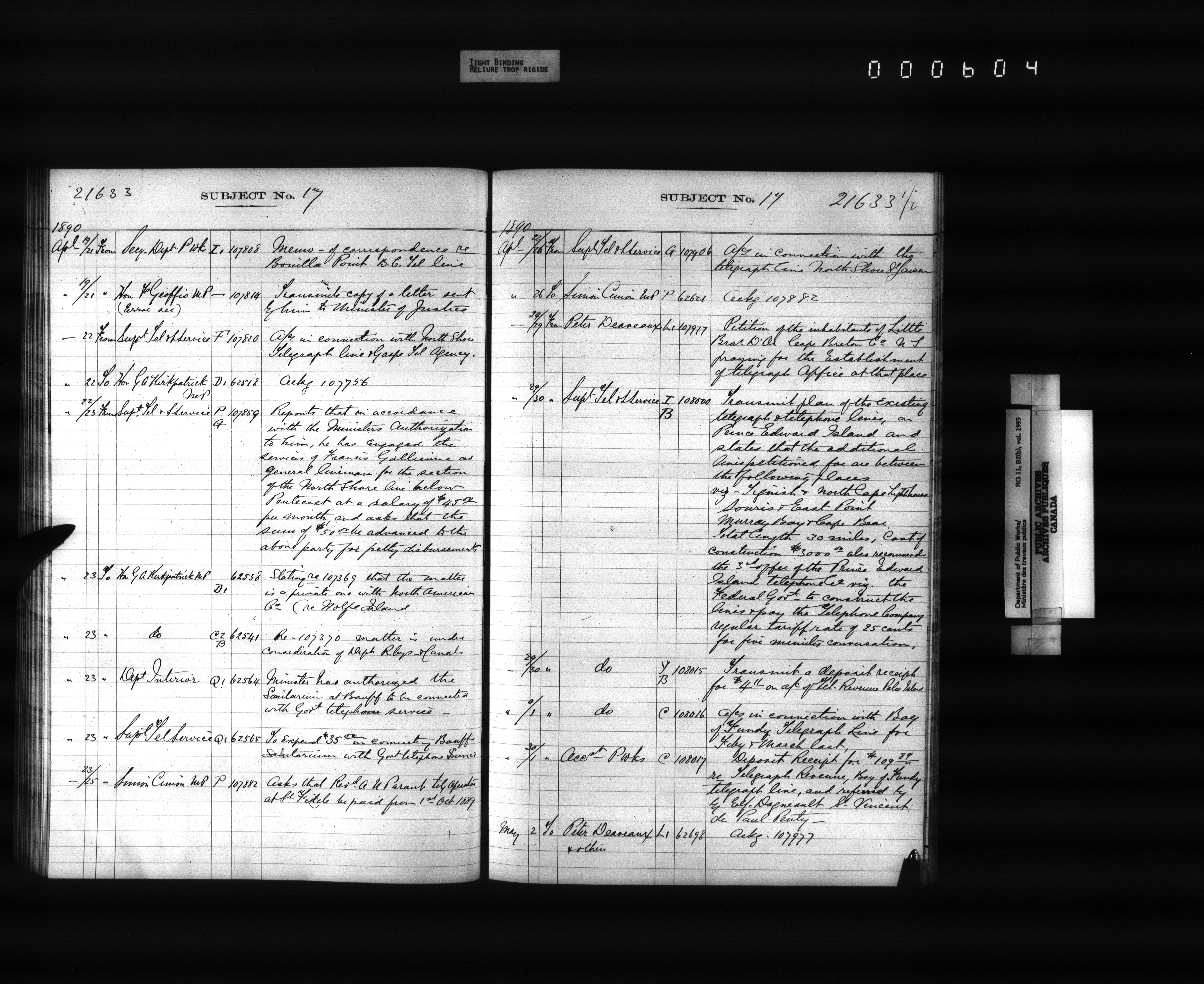 Public Works registers of all incoming and outgoing correspondence arranged by the subject number - 4285