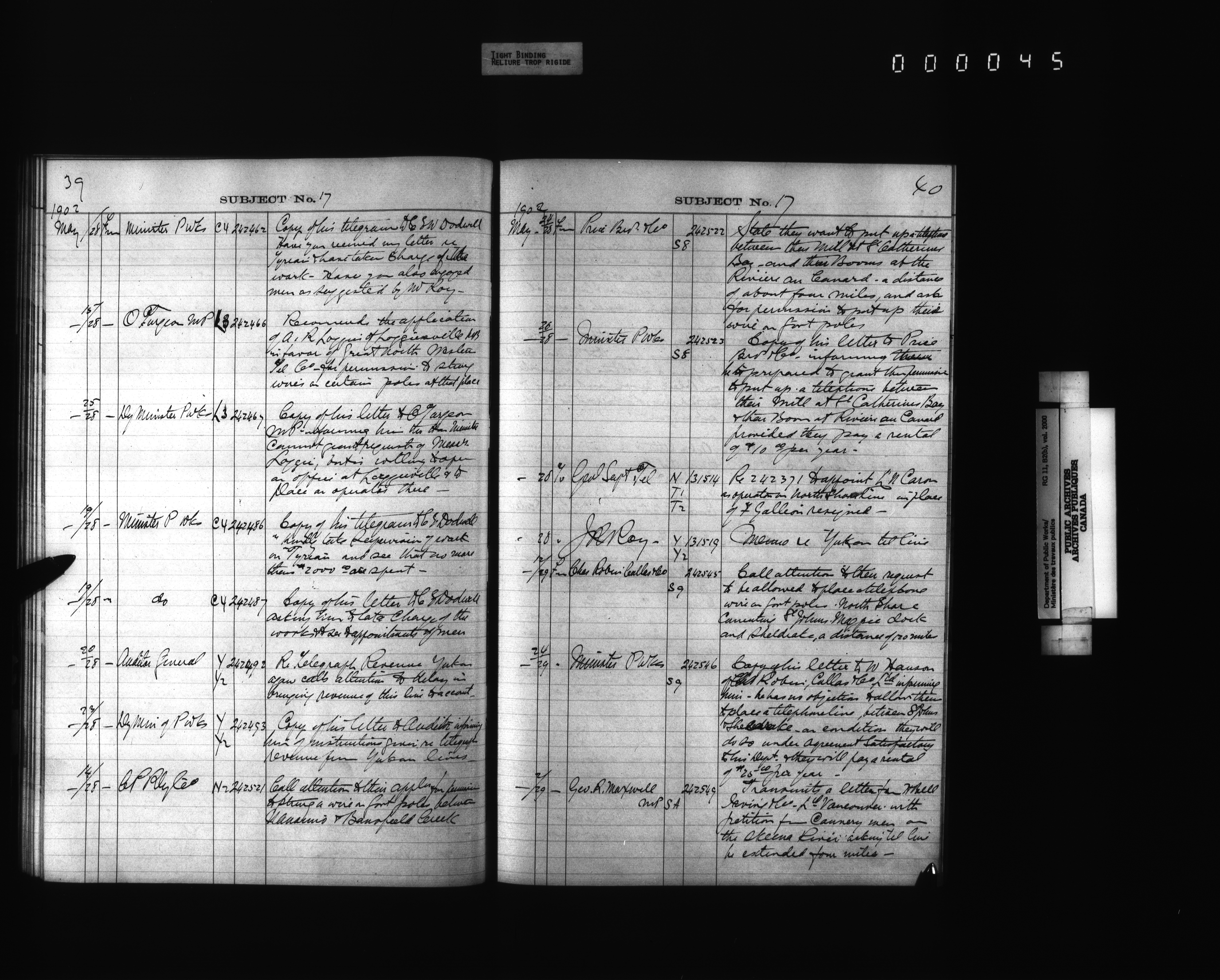 Public Works registers of all incoming and outgoing correspondence arranged by the subject number - 4287