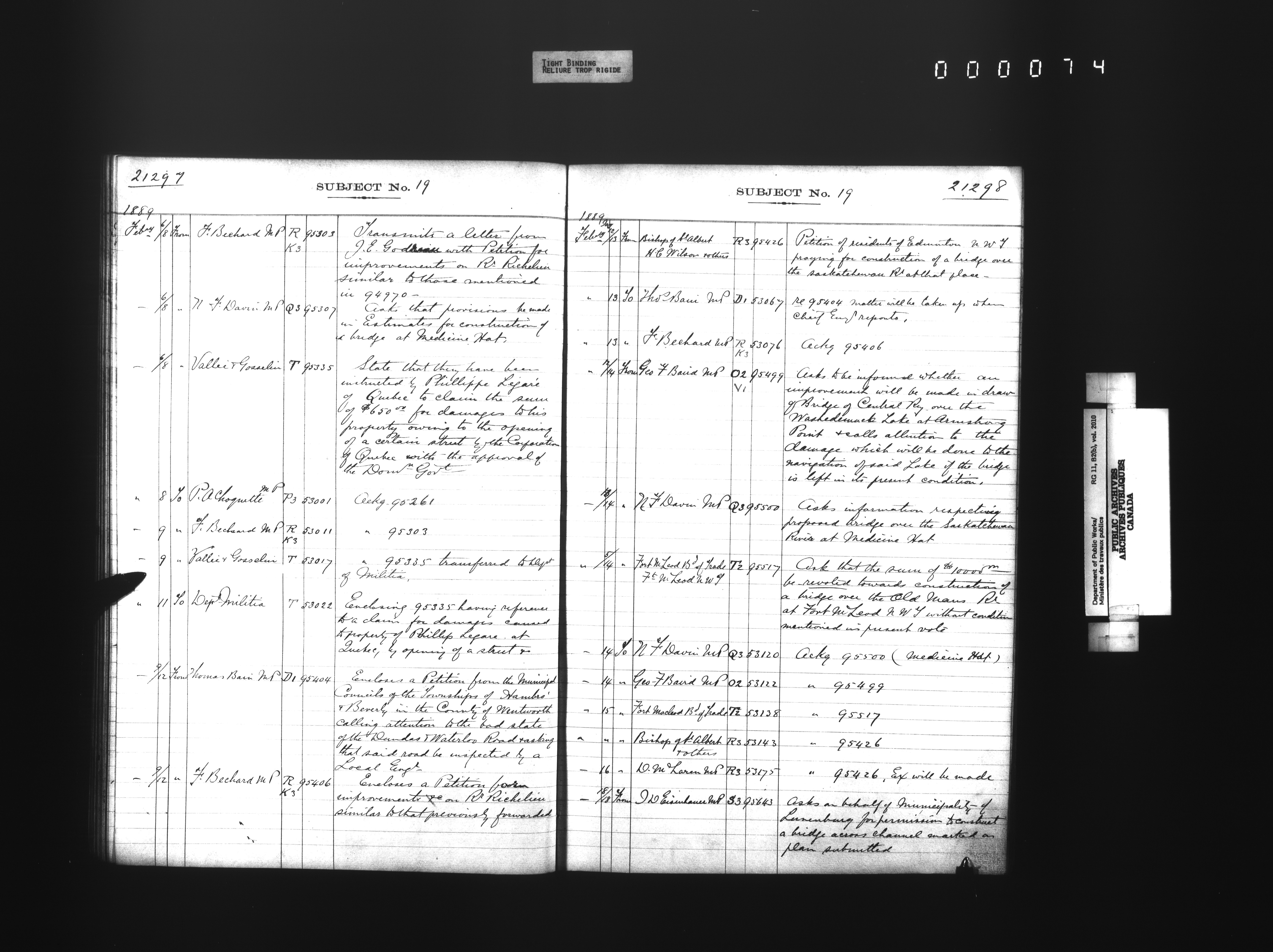 Public Works registers of all incoming and outgoing correspondence arranged by the subject number - 4289