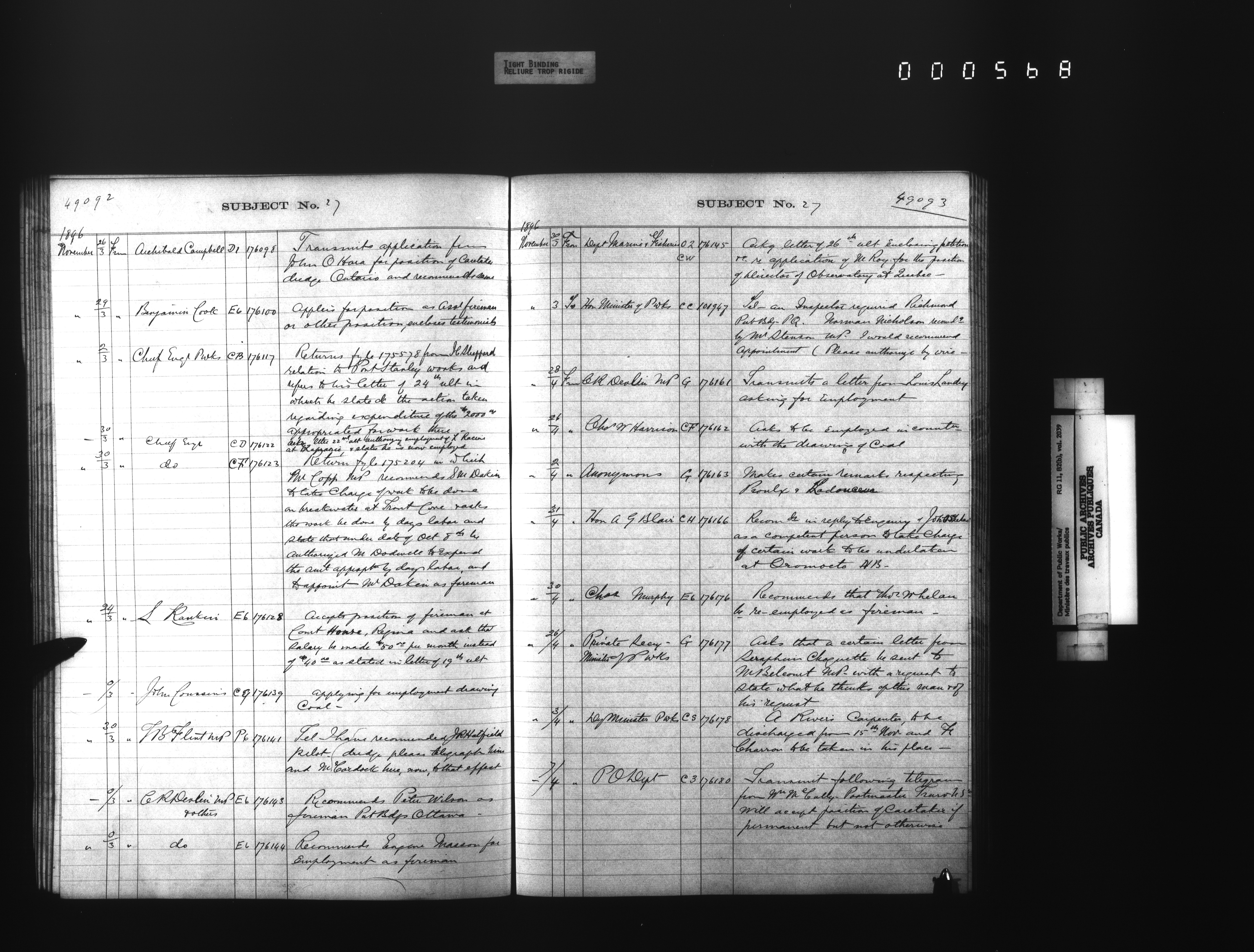 Public Works registers of all incoming and outgoing correspondence arranged by the subject number - 4294