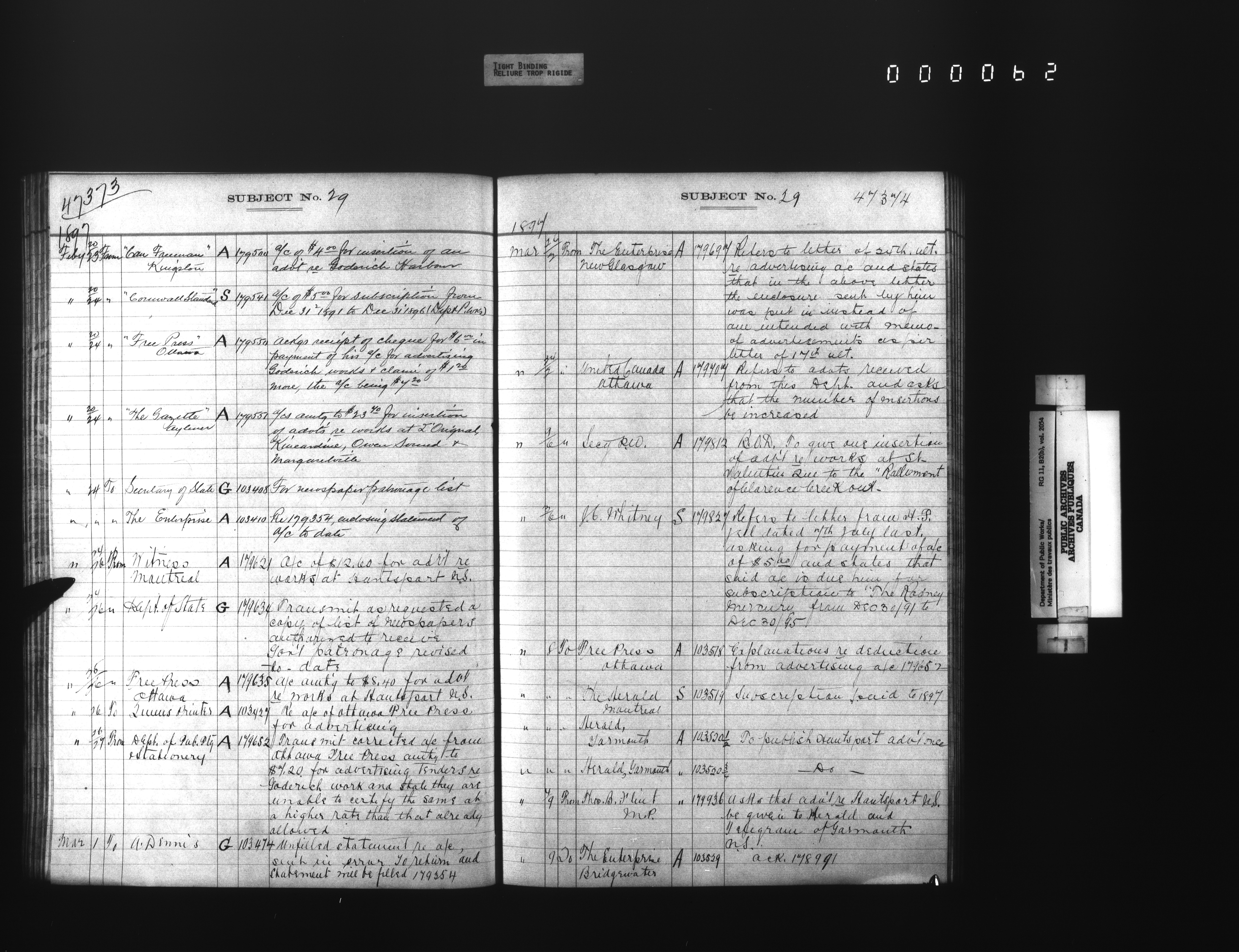 Public Works registers of all incoming and outgoing correspondence arranged by the subject number - 4298