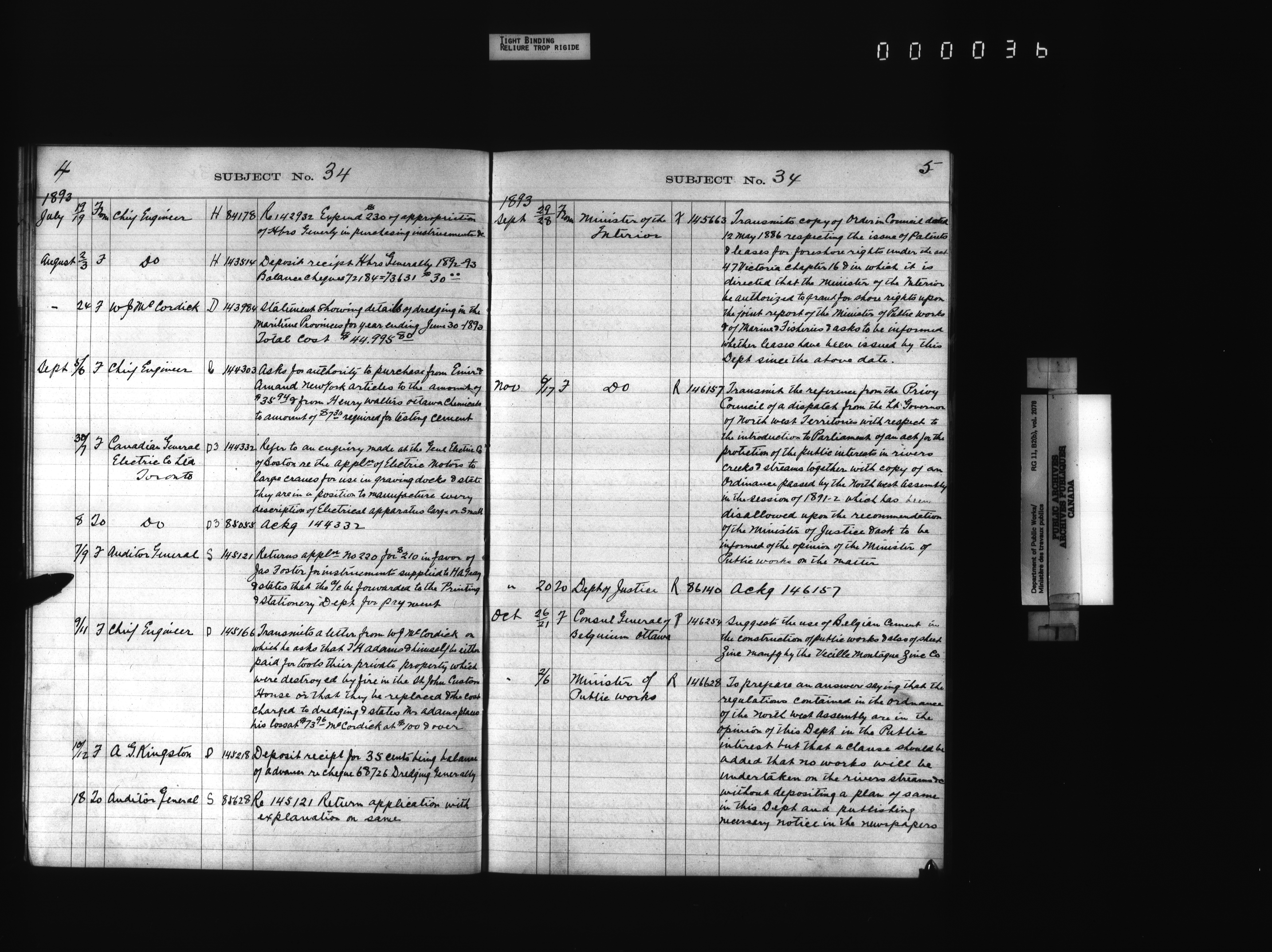 Public Works registers of all incoming and outgoing correspondence arranged by the subject number - 4303