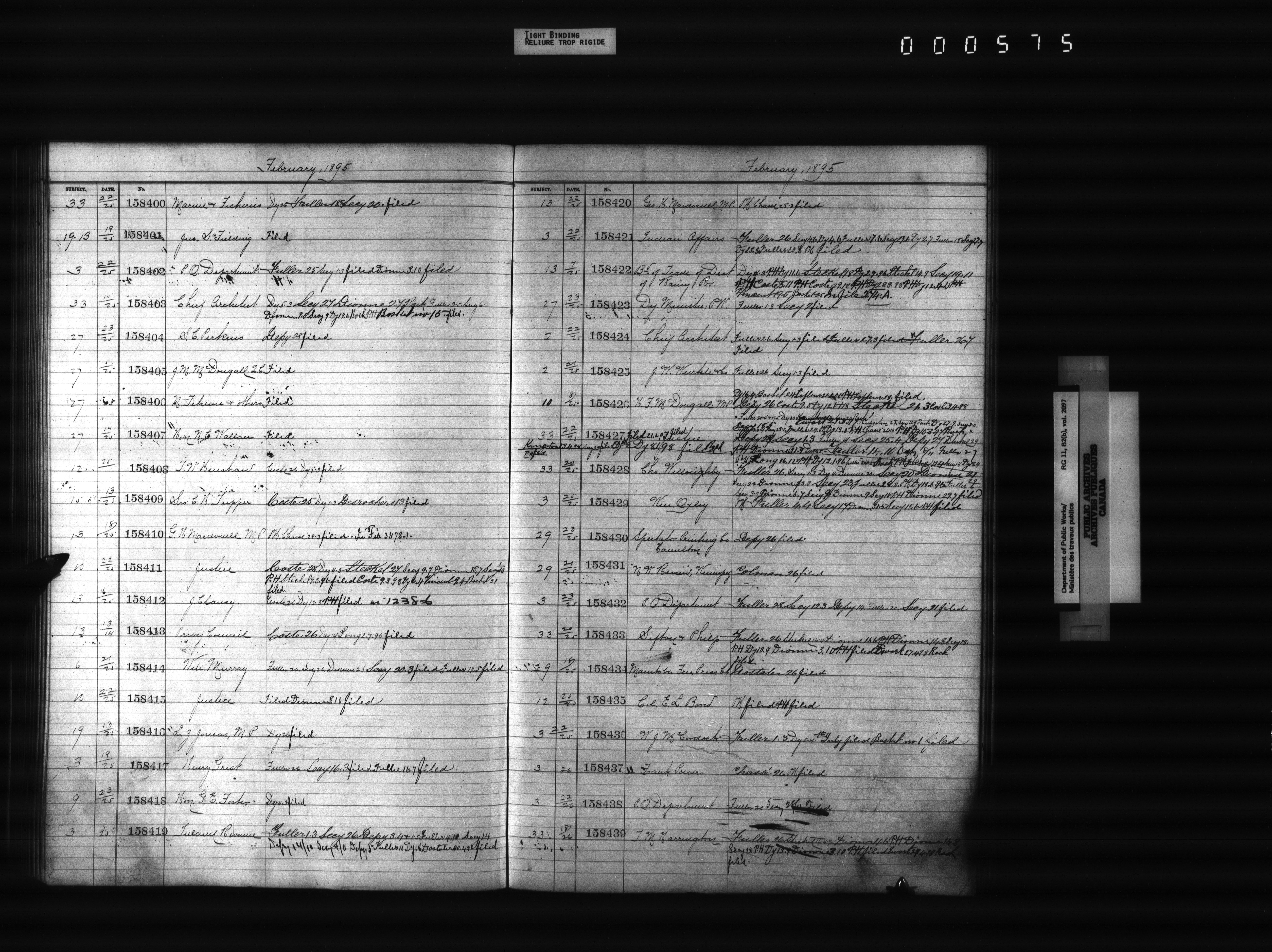 Department of Public Works : registers of papers filed, 1879-1907 : T-4309