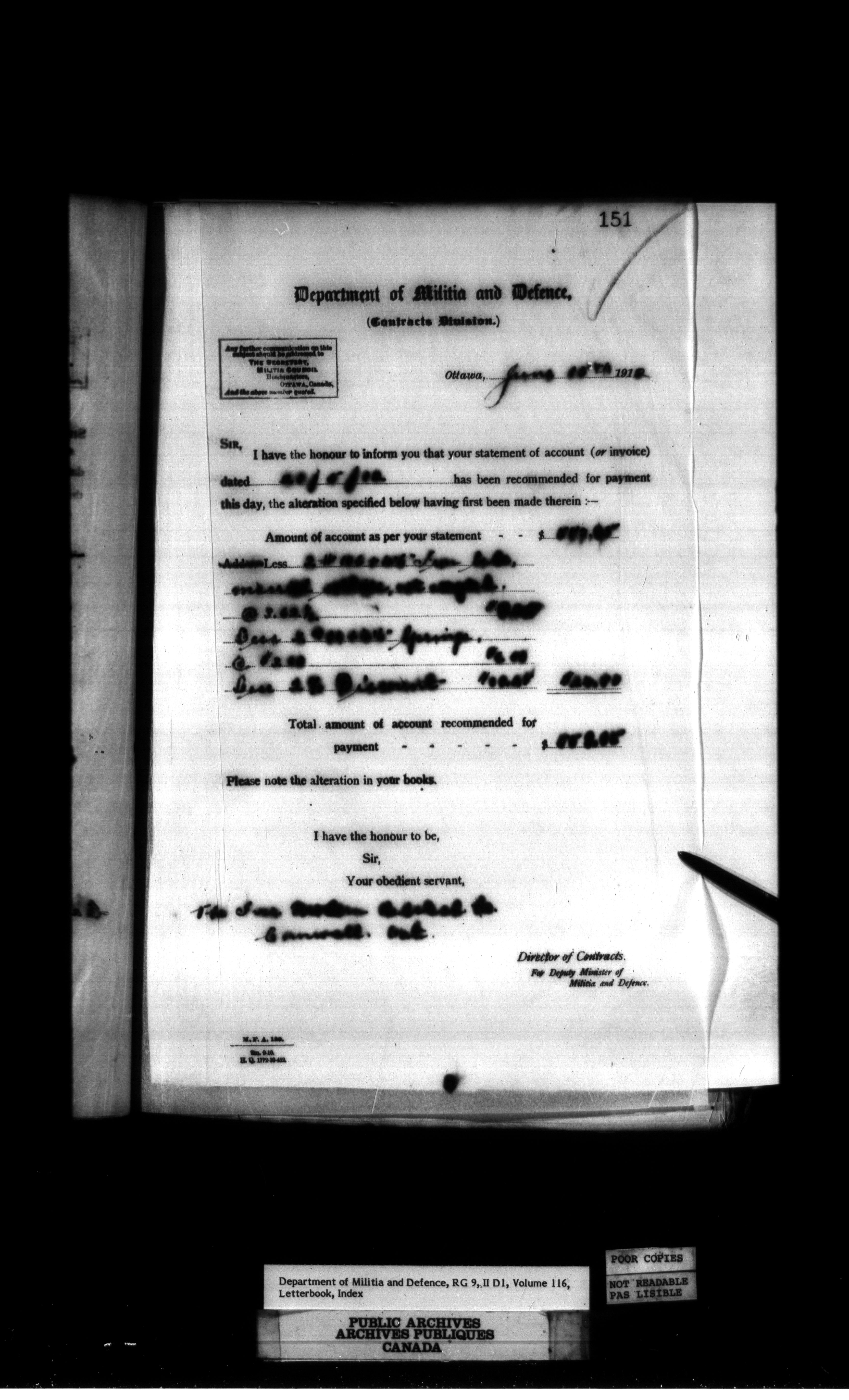 Department of Militia and Defence : Contracts Branch letterbooks, 1895-1912 - 431