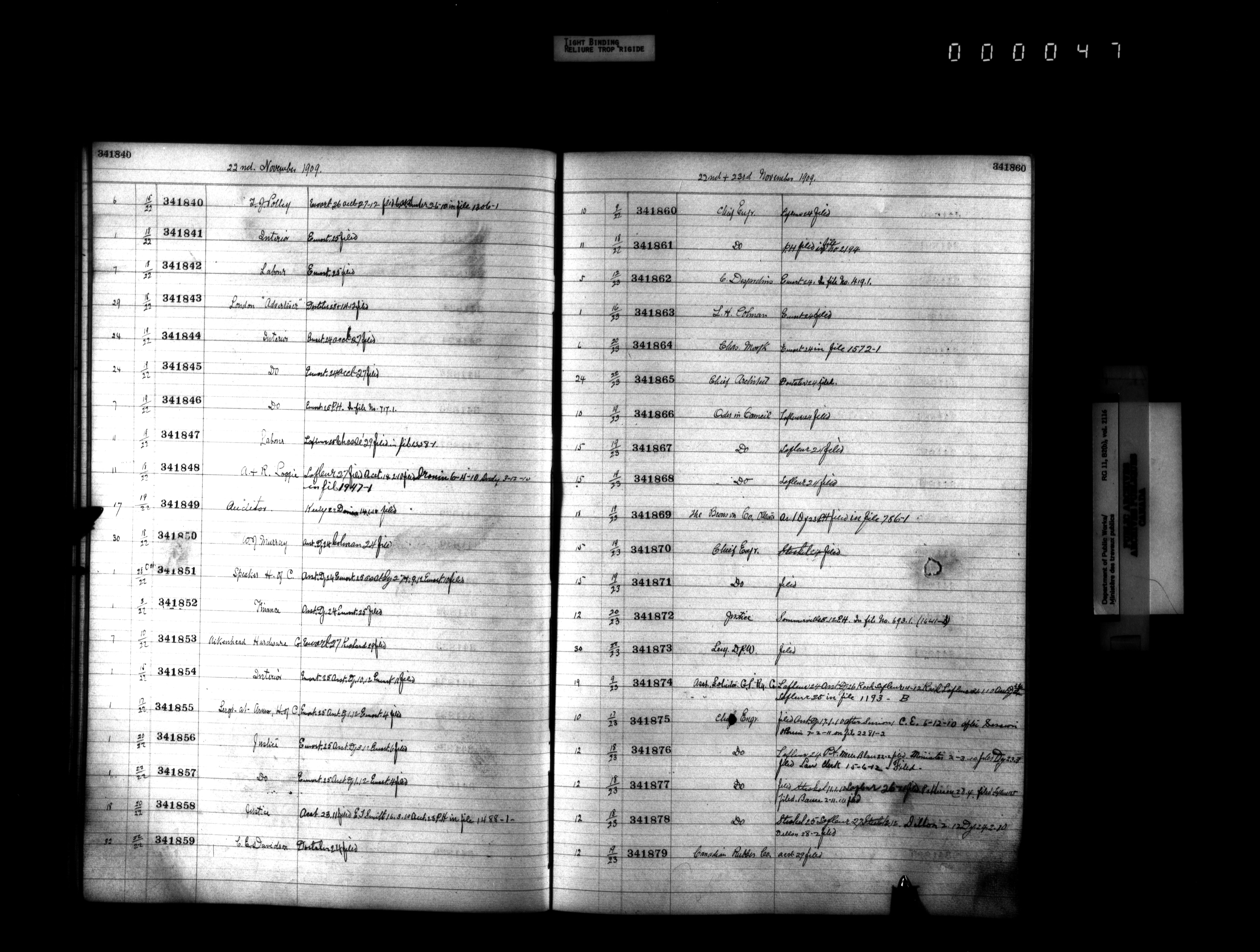 Public Works registers of all incoming papers filed - 4317