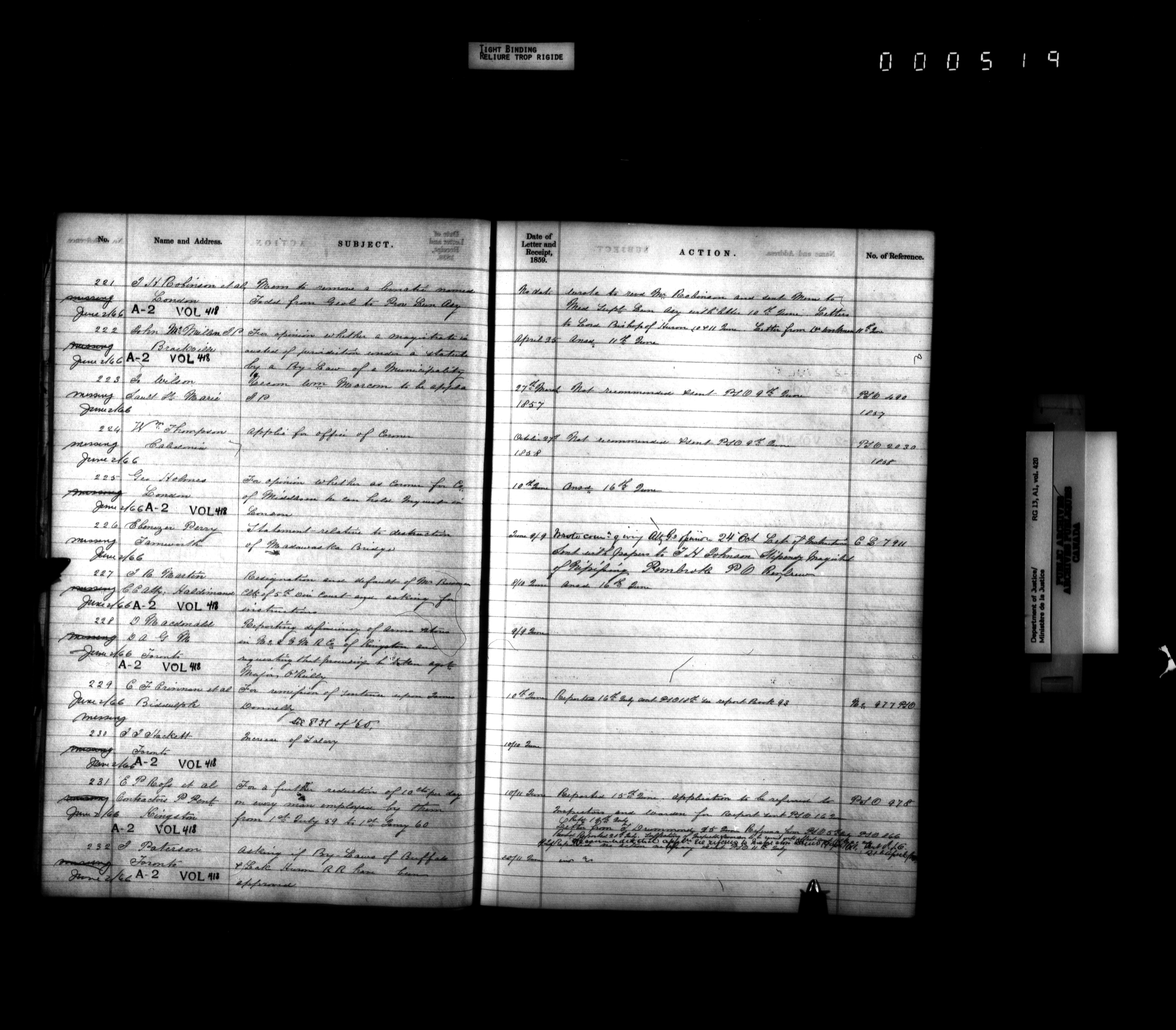 Department of Justice, Central Registry : Indexes and registers - 4319