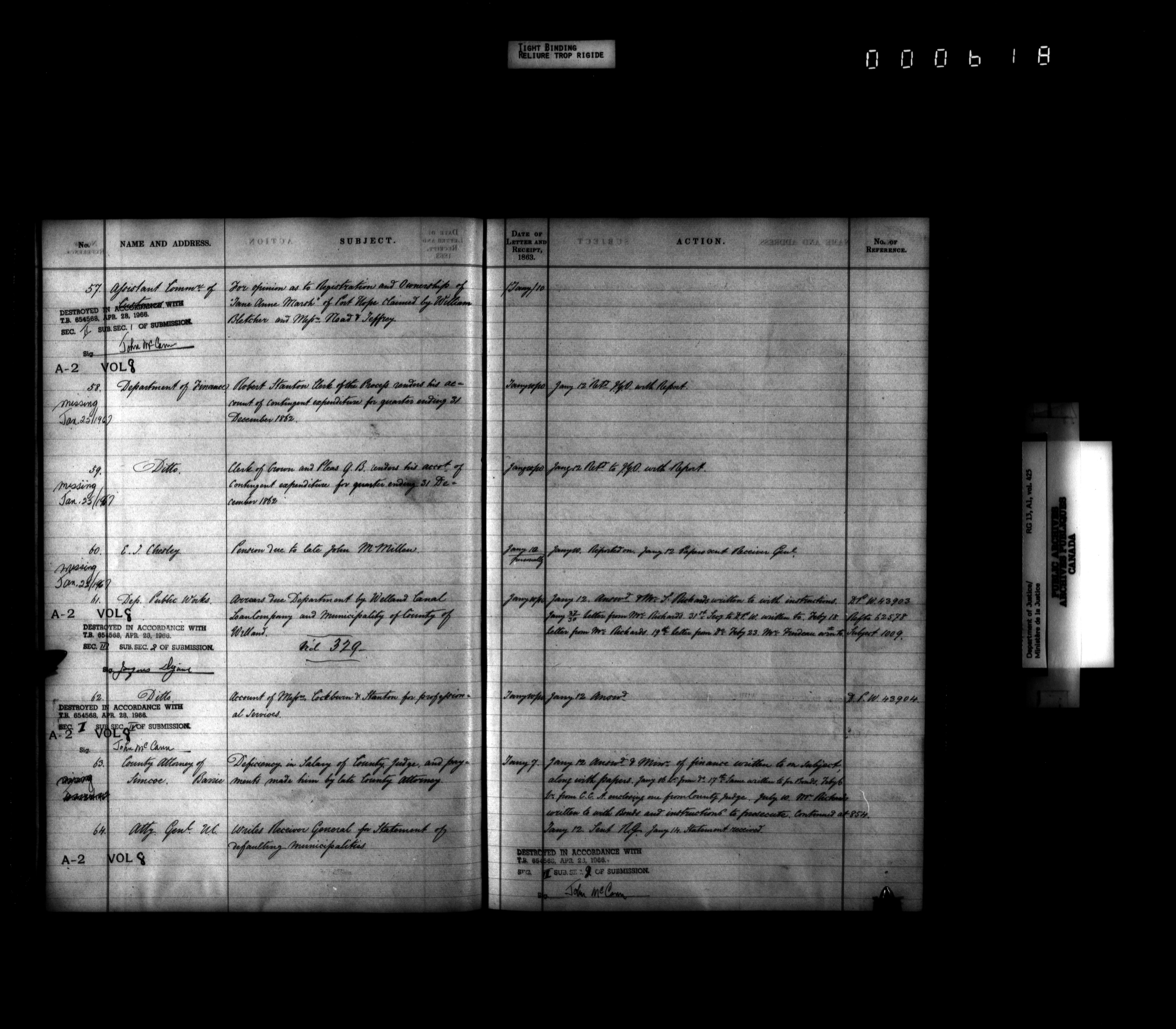 Department of Justice, Central Registry : Indexes and registers - 4319