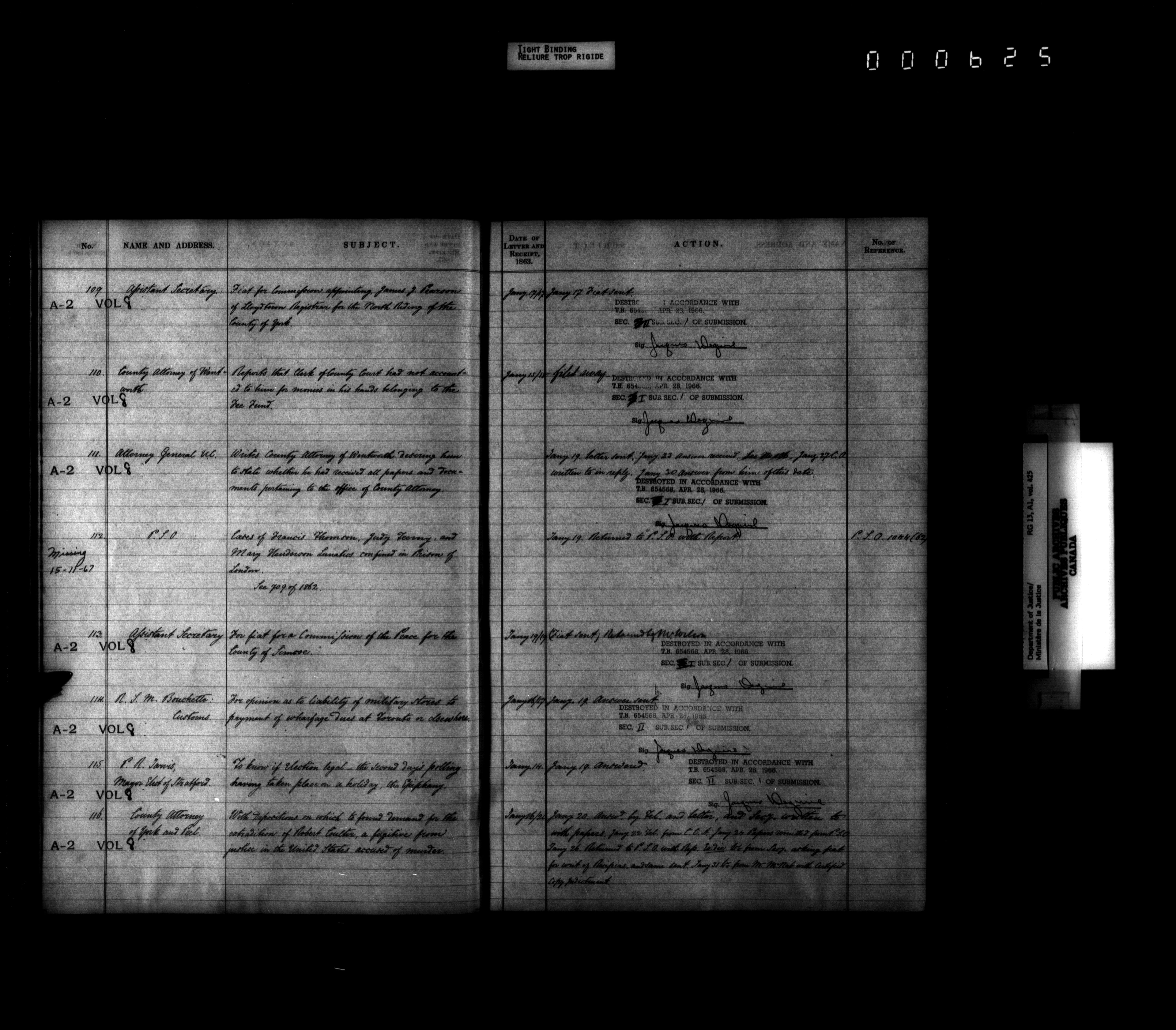 Department of Justice, Central Registry : Indexes and registers - 4319