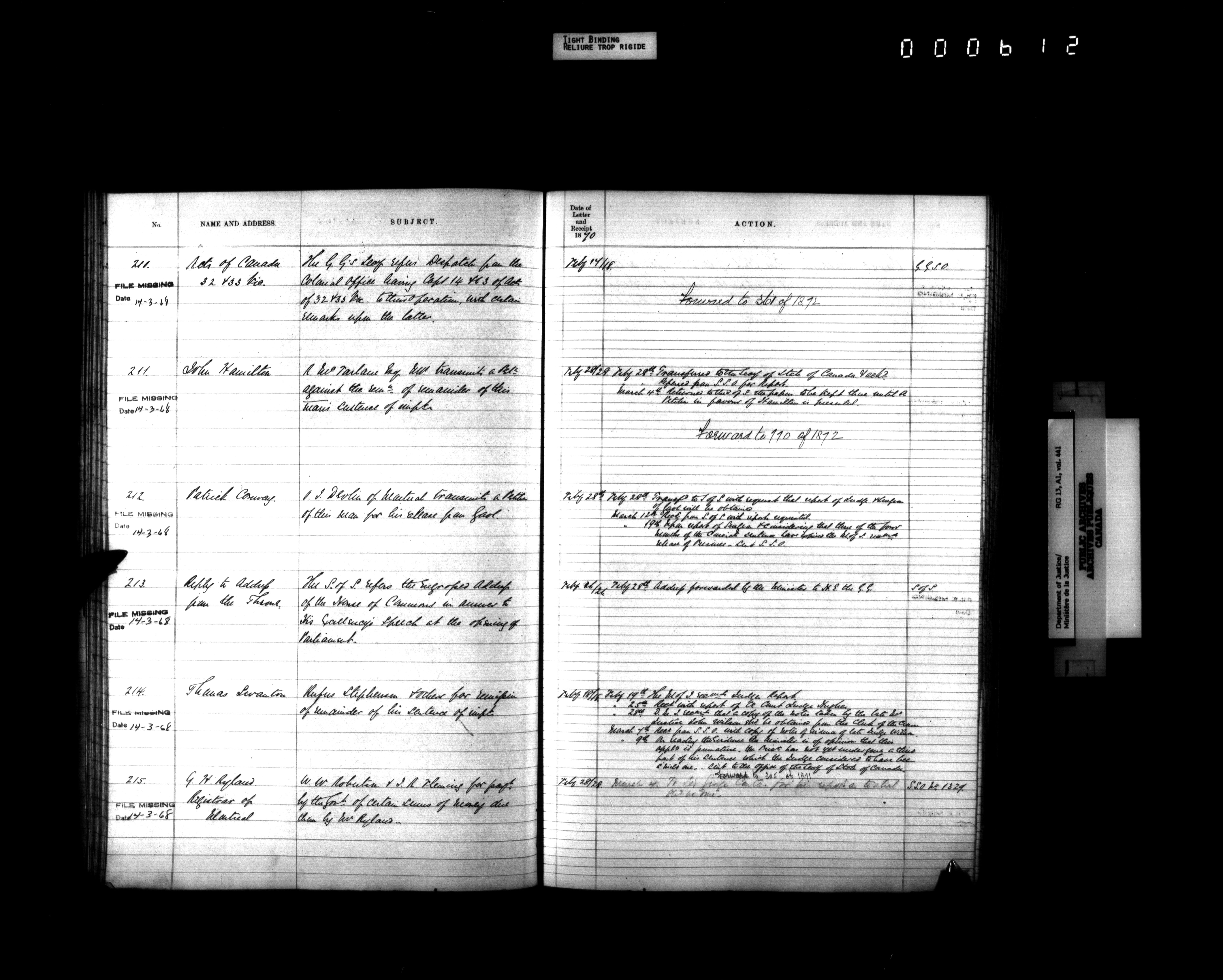 Department of Justice, Central Registry : Indexes and registers - 4322