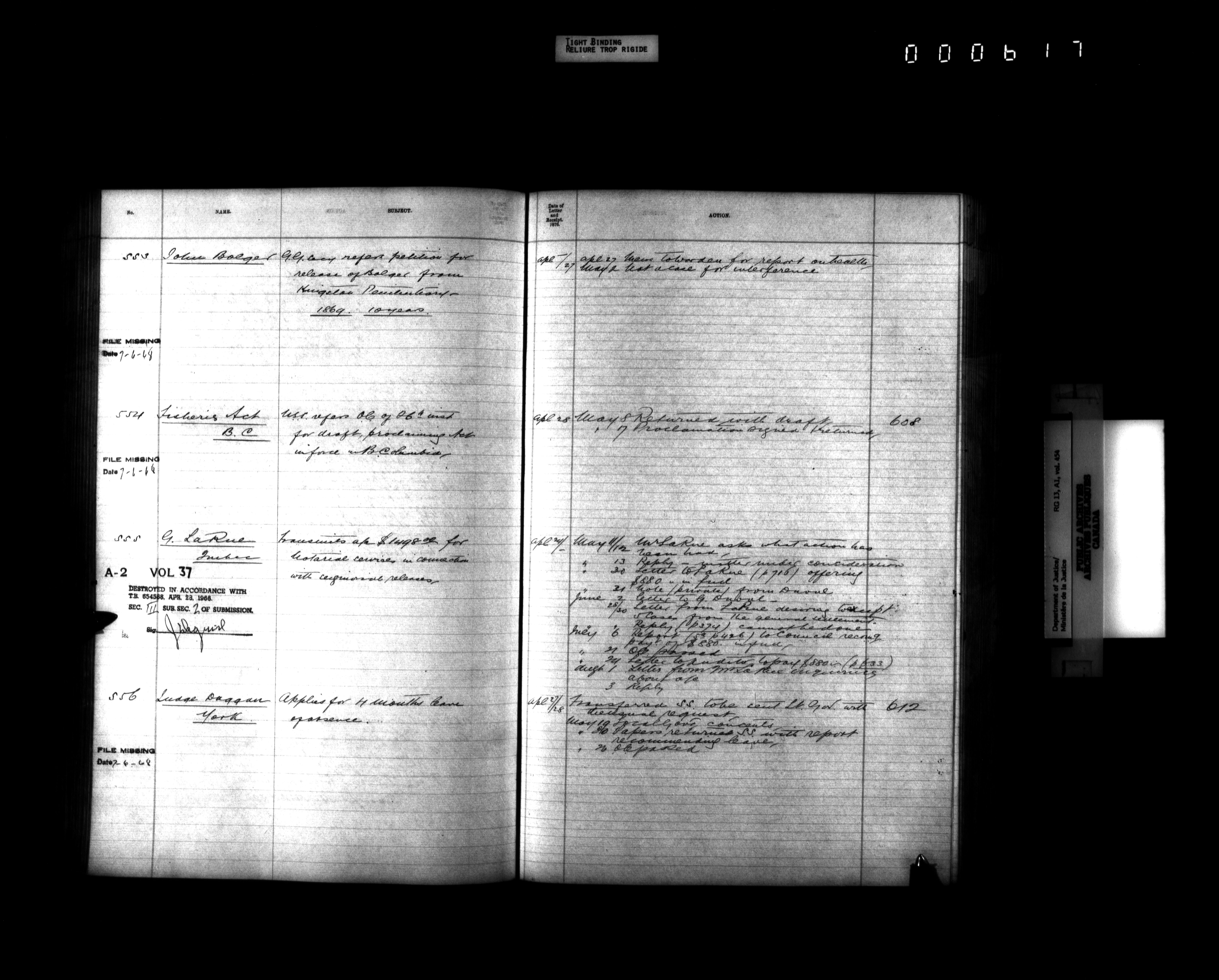 Department of Justice, Central Registry : Indexes and registers - 4326